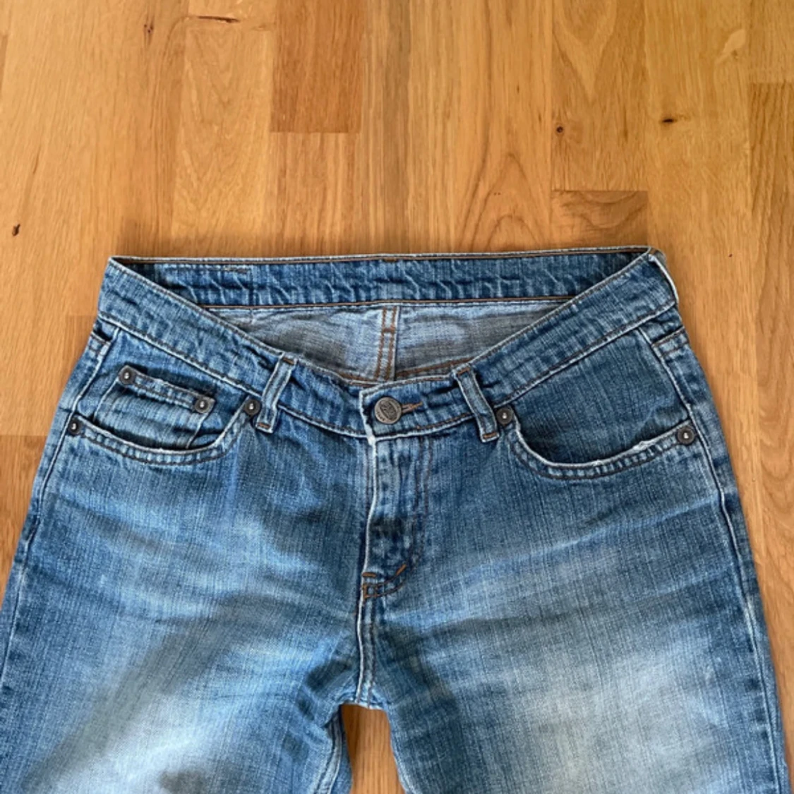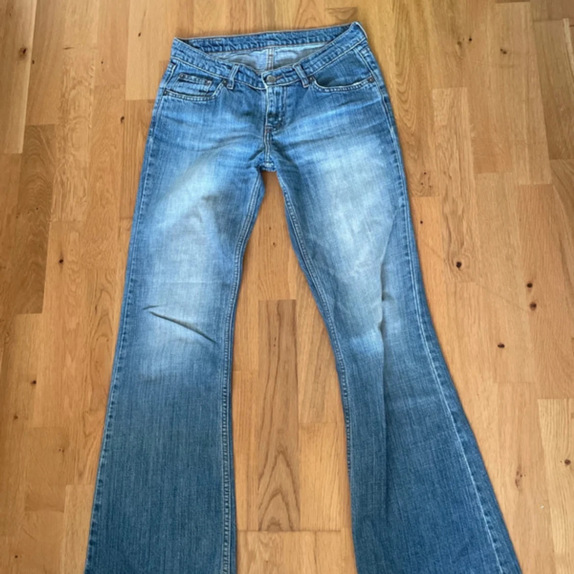 Snygga ljusblå bootcut jeans från Blue Cult med klassisk femficksdesign och slitna detaljer. Jeansen har låg midja och är tillverkade i mjukt bomullsjeans-tyg. Perfekta för dig som gillar en avslappnad och trendig look. för små för mig uppskattar till en XS/S