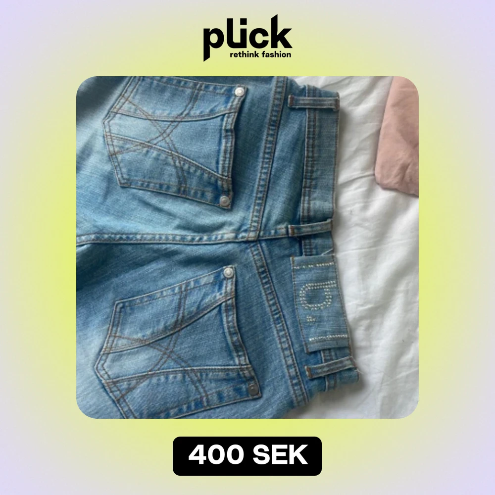 Lågmidjade botcut jeans som är ljusblå. De har väldigt många fina detaljer och är i mellan xs-s i storleken 💗 pris kan diskuteras vid snabbt köp 💗
