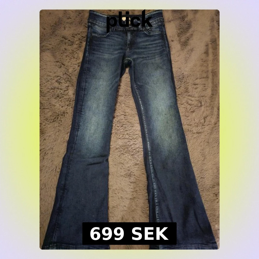 Low waisted jeans, inte andvända. Ser ut att vara en fläck på dessa men det är bara ljuset. Ordinarie pris är 899kr. Från givna tricot.
