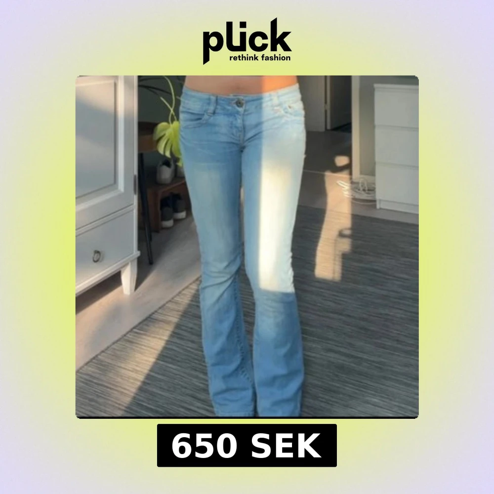 Low Waits ljusblå bootcut jeans med innerbenslängden ca 74, midjemåttet rakt över ca 38💕