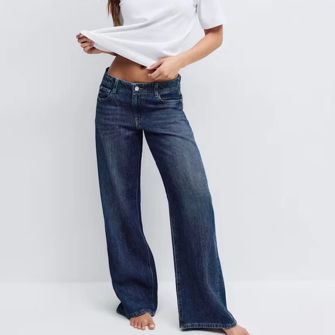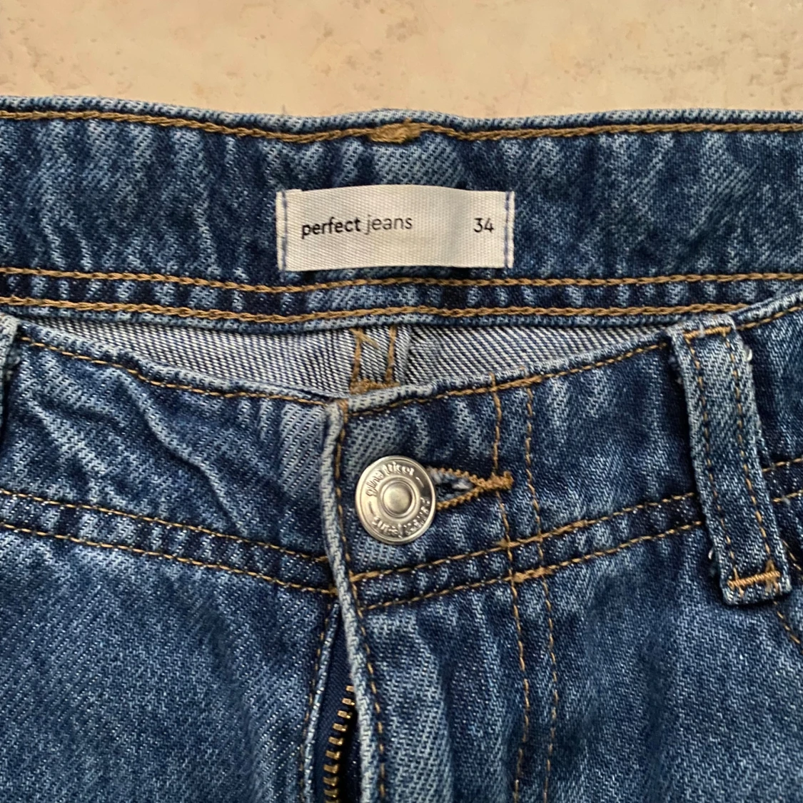 Säljer ett par blå jeans från Perfect Jeans i modell med breda ben och låg midja. Klassisk femficksdesign och snygg tvättad denim. Perfekta för dig som gillar en avslappnad och trendig look.