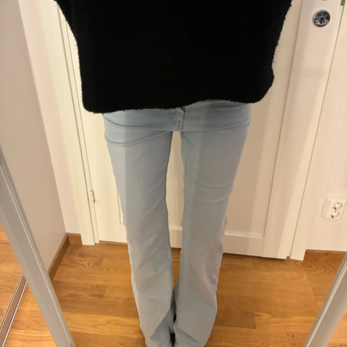 Köpta på h&m men aldrig använda. Lappen är bortklippt men midjemått är ca 37-38cm & innerben 78cm, de är stretchiga! 💙