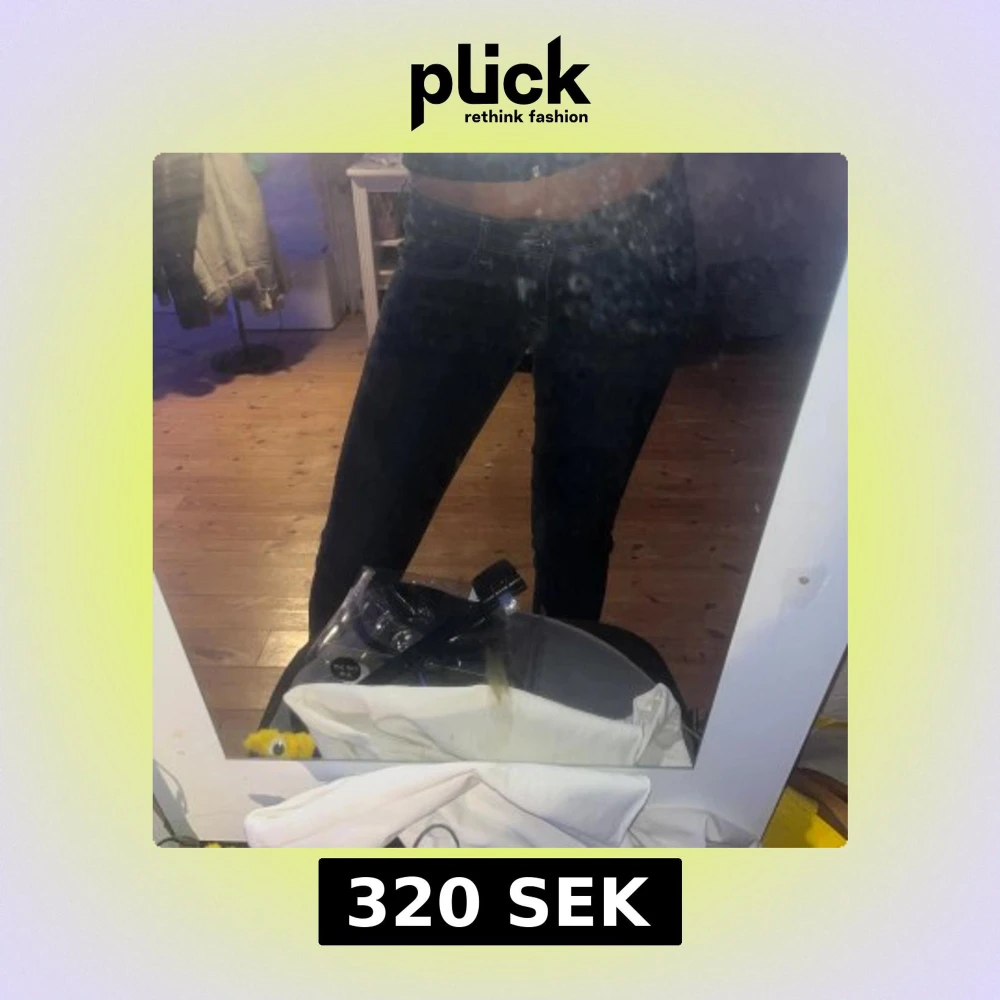 Säljer dessa mörkblåa lowrise bootcut jeans då dom inte längre kommer till användning. Sitter super fint och är ganska långa på mig (165cm). Fortfarande i fint skick men en liten skråma vid ena bakfickan (syns knappt). skriv vid fler bilder eller frågor! ❣️