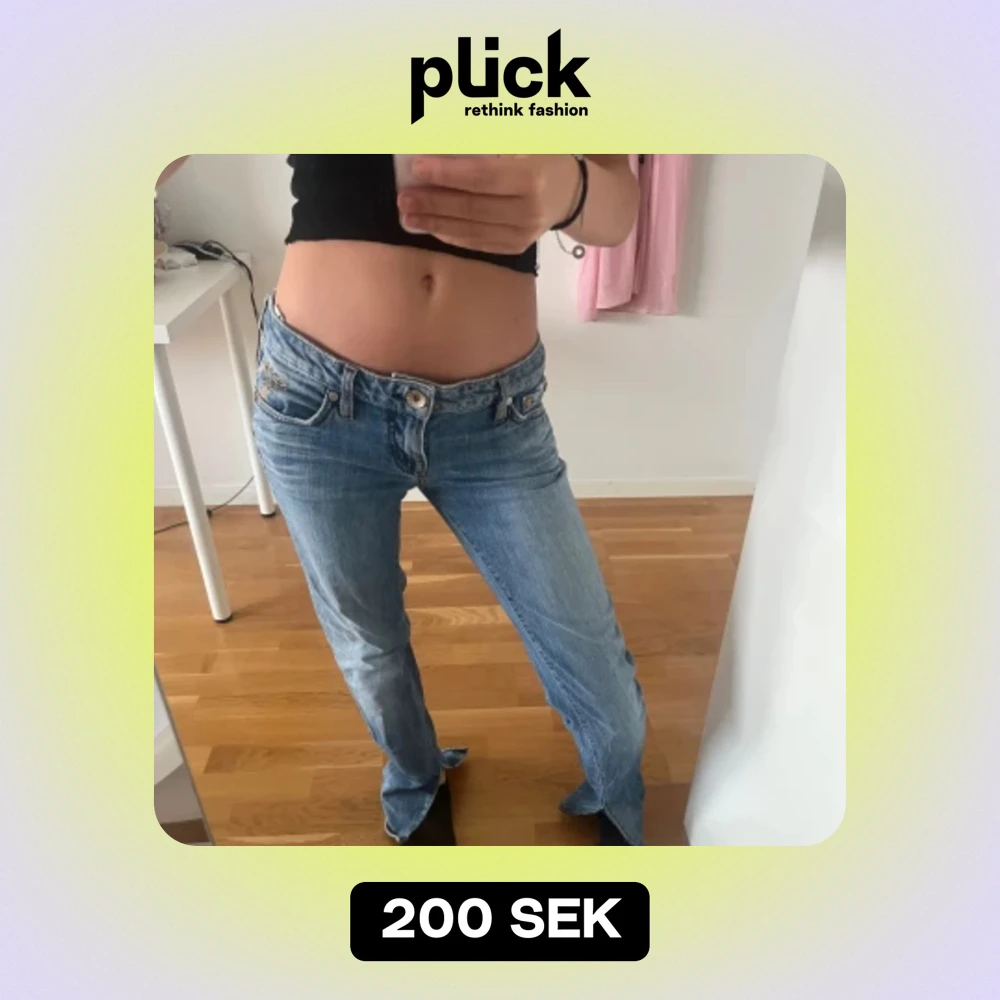 Gör nu en enorm rensning på jeans och därav säljer jag dessa snygga jeansen. Säljer då jag inte får mkt användning av dem. De är lågmidjade och uppklippta längst ner för att få en mer bootcut effekt! De har en liten färgfläck på knäet. Kp för fler fr