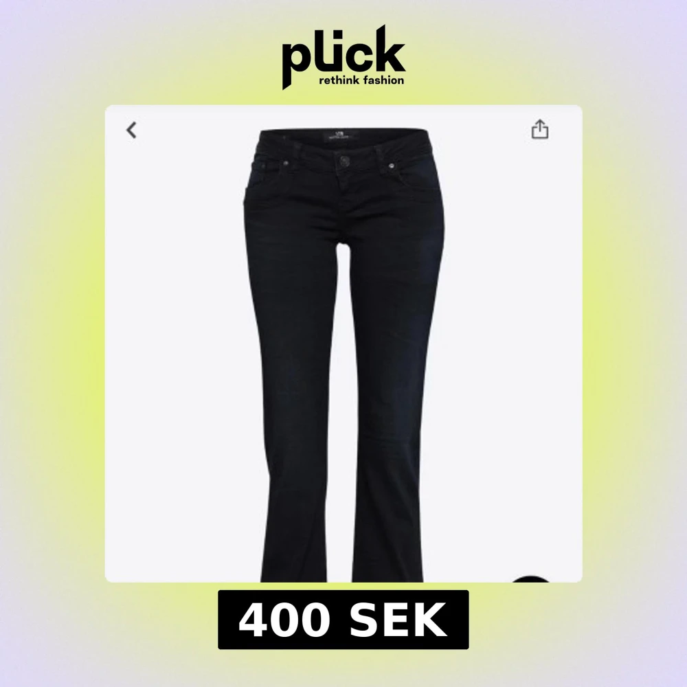 Mörkblå bootcut jeans från LTB med låg midja, säljer då de är för stora för mig där av ont med bilder på. Etiketten säger 26/32 men de exakta måtten är: midjemått tvärs över: 38cm, innerbenslängden: 80cm och grenhöjden: 18cm💕