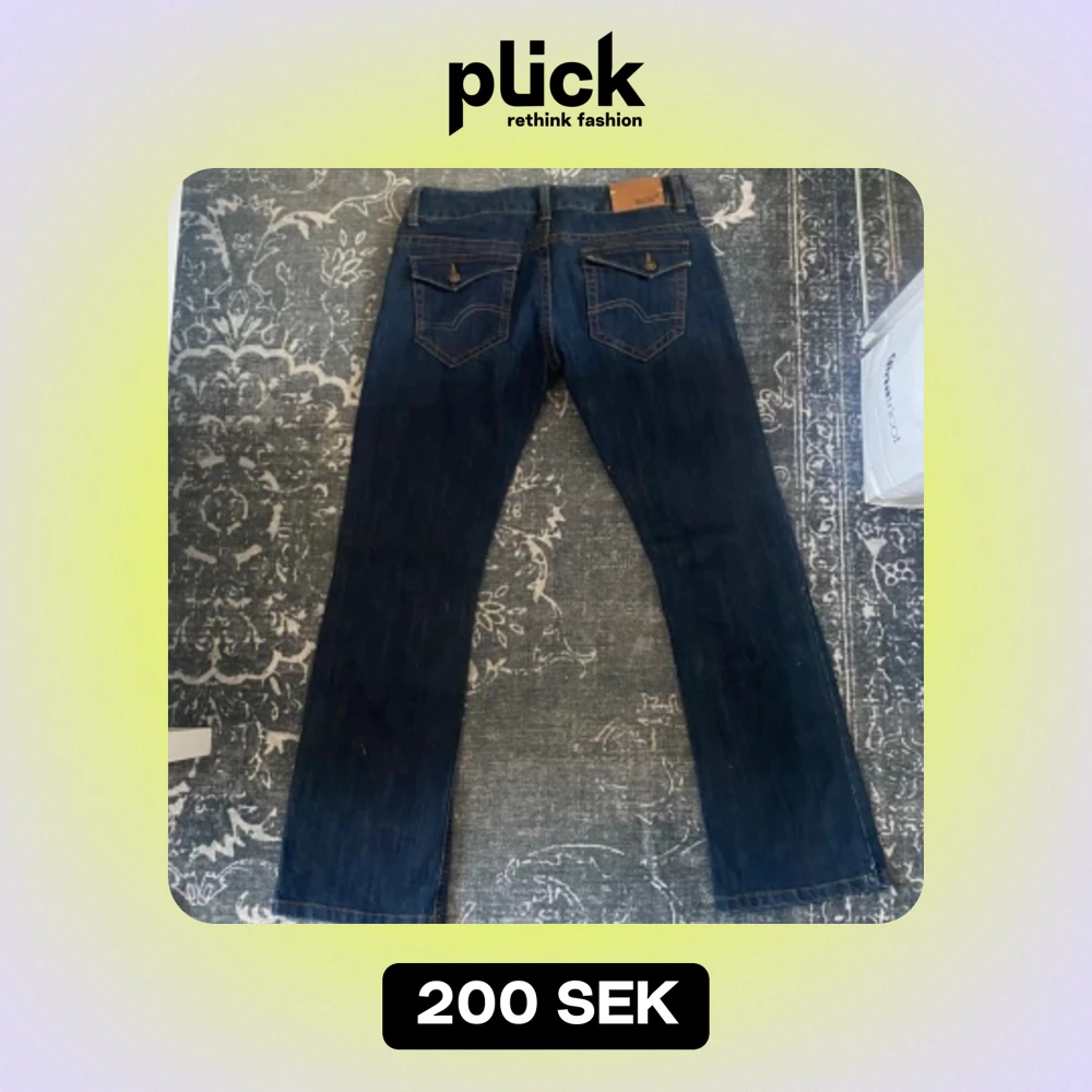 Jättesnygga mörkblå jeans, sitter lågmidjat och super snygga fickor:) bara att skriva vid frågor eller för mått