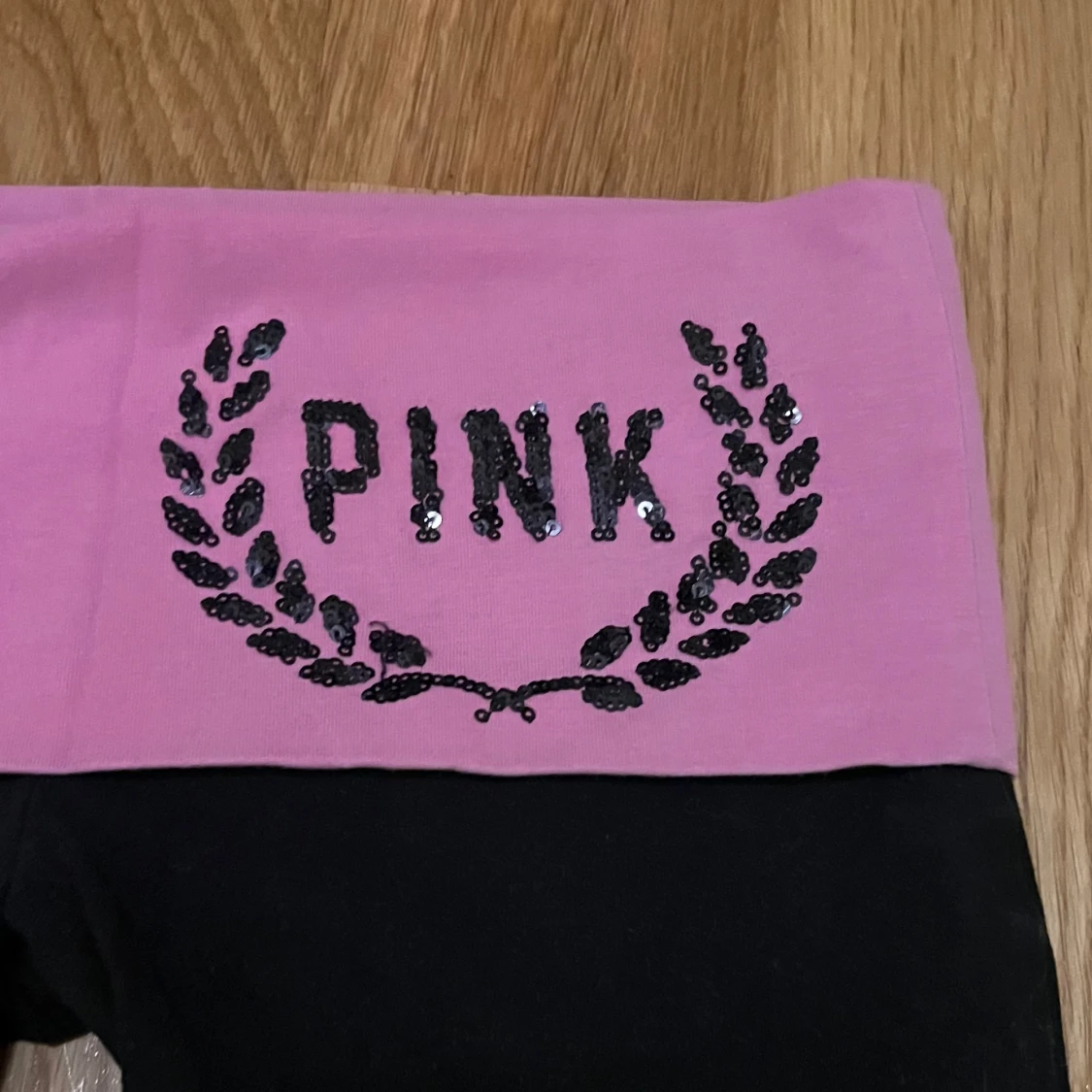 Supersnygga och unika yoga pants från VS PINK, de är i mycket fint skick, använda 1-2 gånger, en lös tråd som man ser på bild 5, den påverkar dock inget och sitter inte löst💖 De är stretchiga och mått finns på bilder!😇