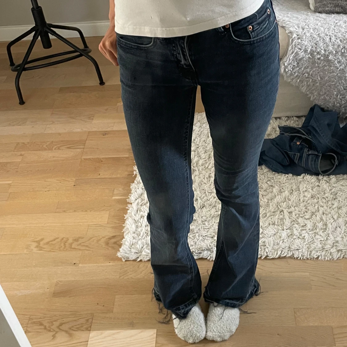 Super snygga mörkblå low waist bootcut jeans, perfekt längd för mig som är 167!