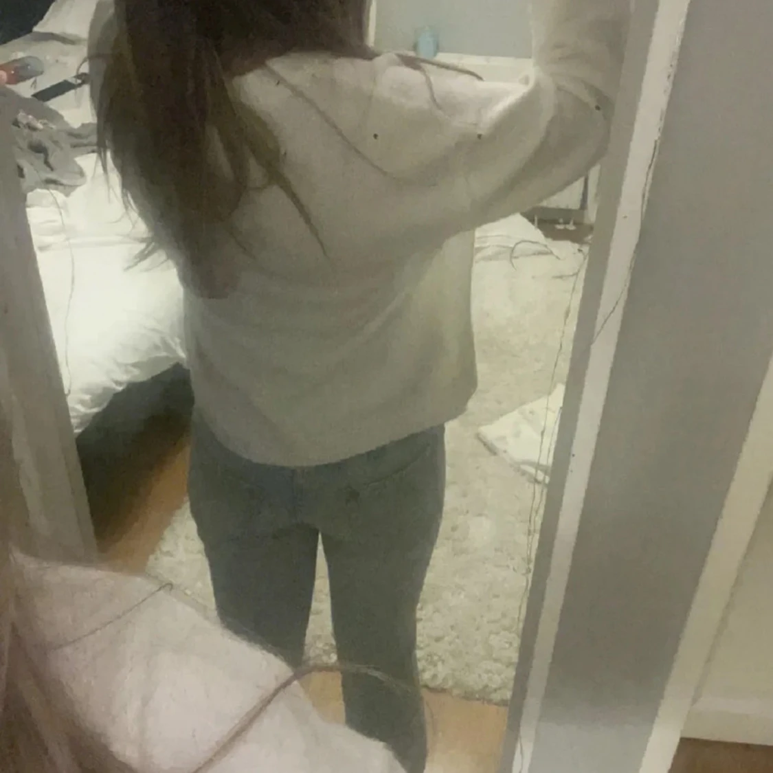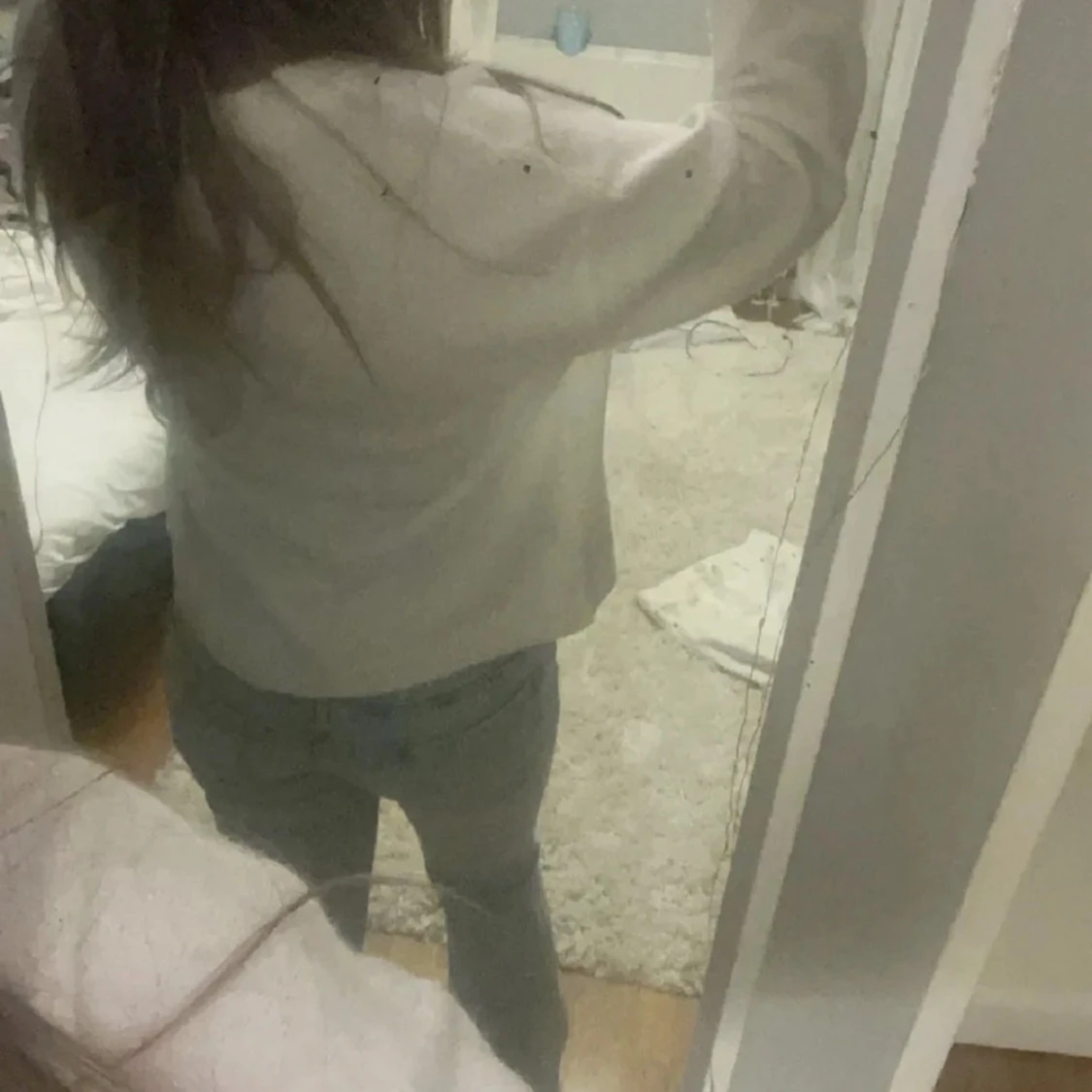 Säljer ett par ljusblå jeans med bootcut-modell och låg midja. Jeansen har klassiska fickor fram och bak samt en snygg, lätt utsvängd passform nertill. Perfekta för dig som gillar en retro vibe och vill ha ett par jeans som sticker ut lite extra.
