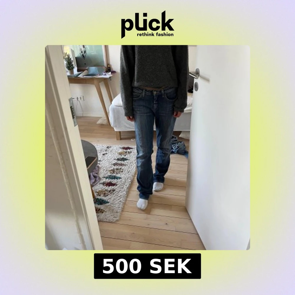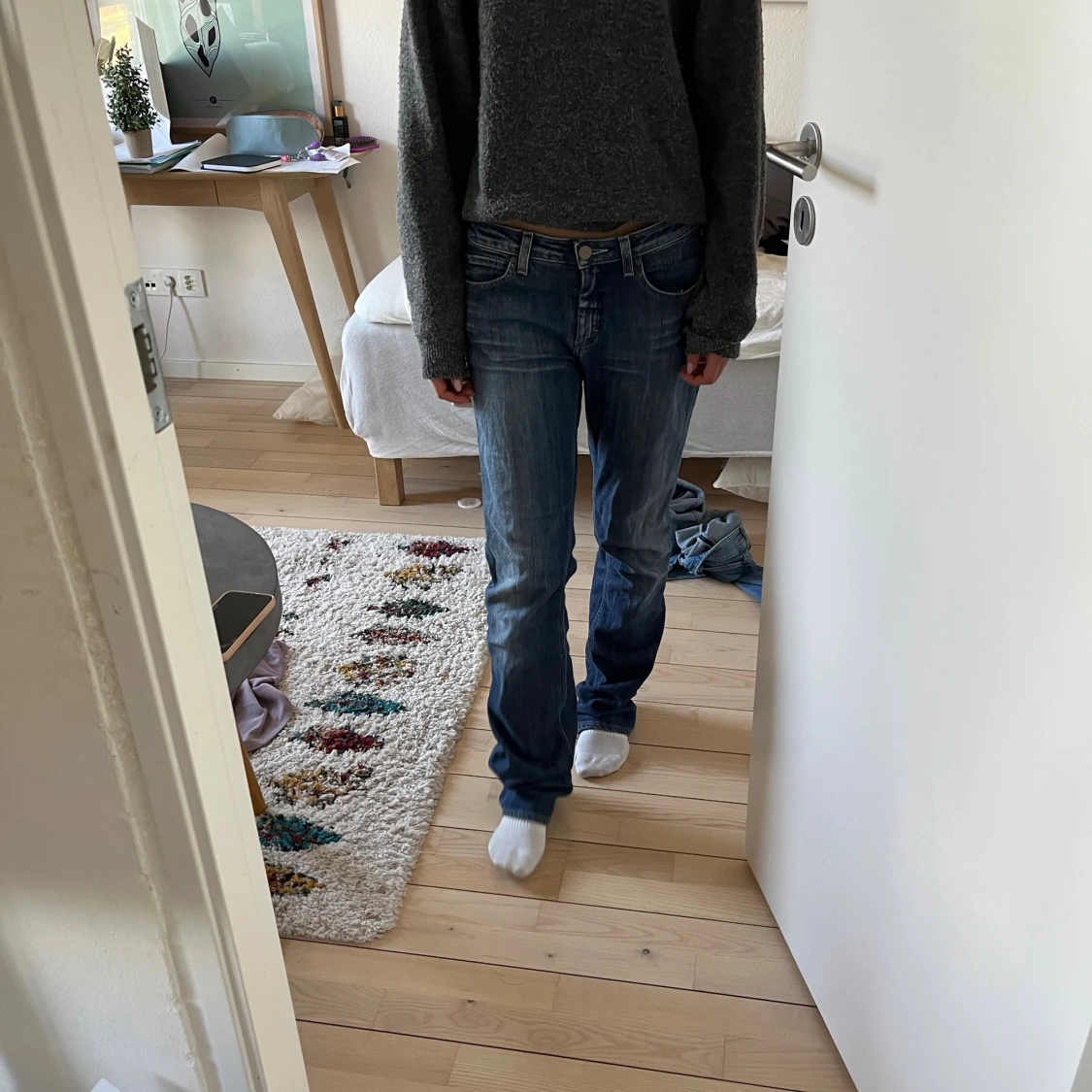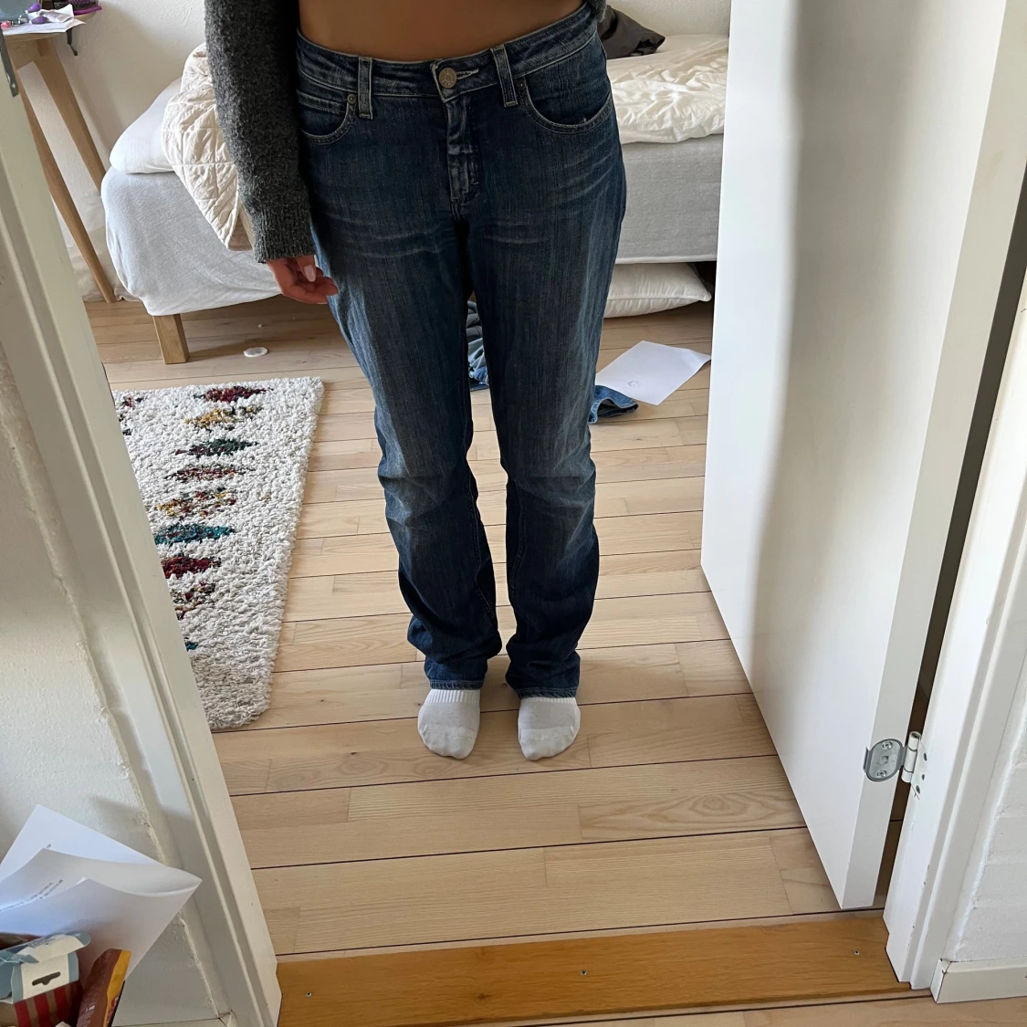 Säljer ett par jeans med straight fit och låg midja. Jeansen har fem fickor, snygga slitningar och en autentisk tvättad look. Perfekta för dig som gillar en tidlös och avslappnad stil. Är ifrån acne studios