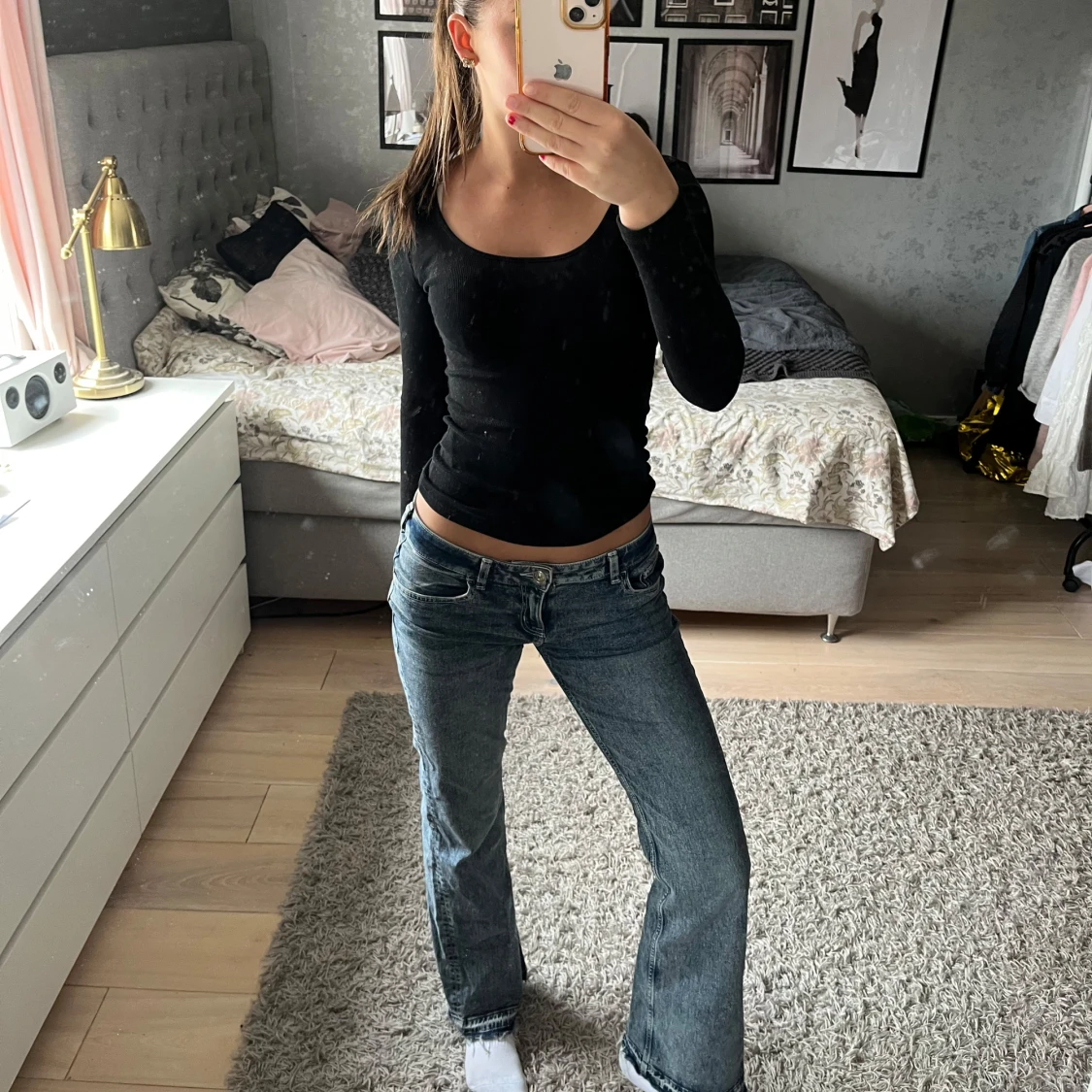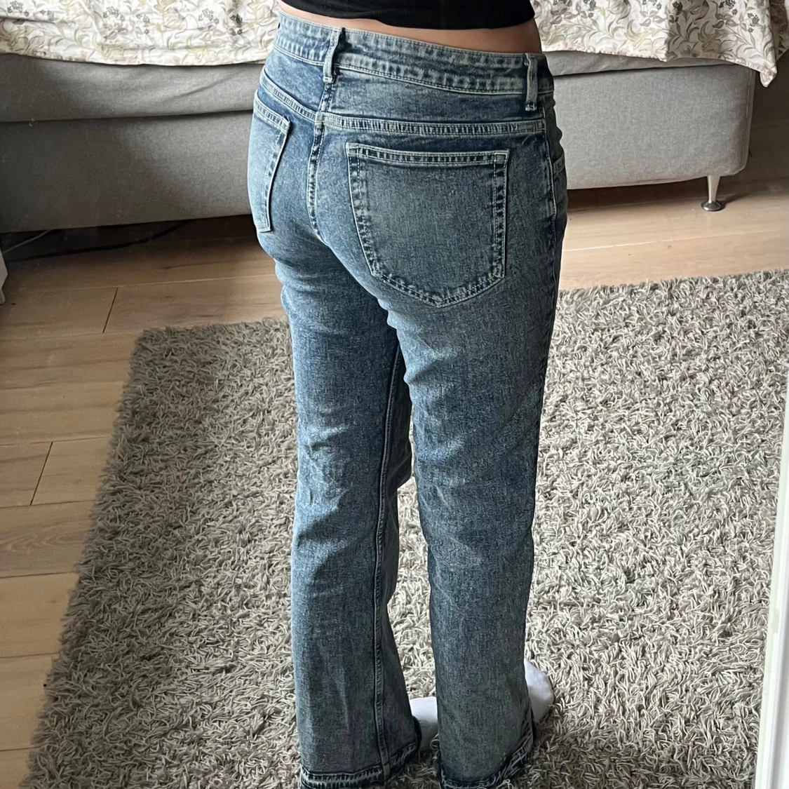 Snygga lowwaist jeans från Divided. De har en bootcut passform och är knappt använda. Även snygg detalj längst ner på jeansen. Dom är bra längd för mig som är 173.
