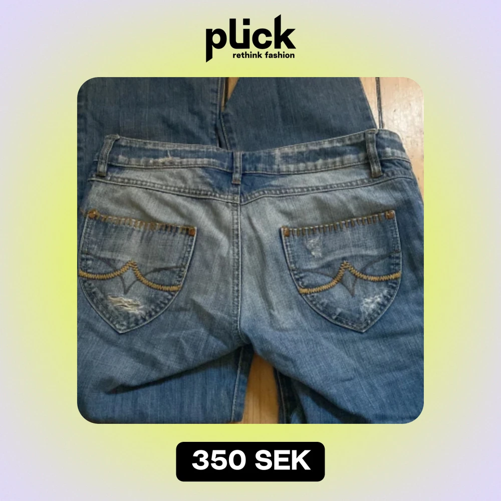 Jättefina lowwaist bootcut jeans med snygga detaljer på bakfickan!! Har slitningar längst ner på benen som syns på sista bilden annar i bra skick! Står storlek eur 40 men skulle säga att de är en mindre medium.