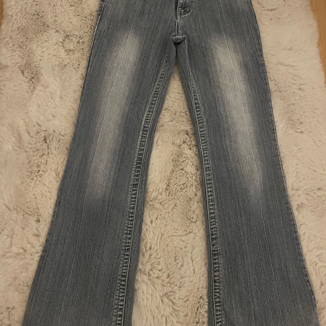 Snygga blå bootcut low waist jeans från Bonny Girl med ljusa partier framtill. Bakfickorna har coola broderade detaljer i silver. Klassisk femficksmodell i jeansmaterial, perfekt för dig som gillar en retro vibe. Dem är uppsydda men det är enkelt att ta ner. Svarar på alla frågor eller om nån vill veta mått
