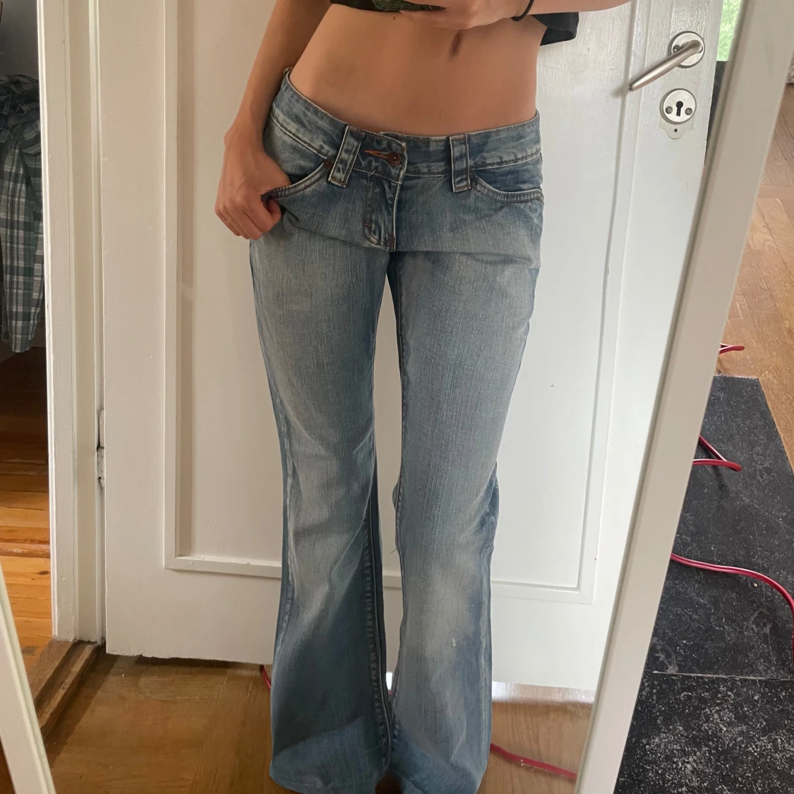 Skitsnygga lågmidjade utsvängda jeans från ”reserved” i storleken 27/32. Midjemått 36/37cm och innerbenslängd 77/78cm💘 Inga defekter & köp gärna via ”köp nu”. Skriv för nytt prisförslag