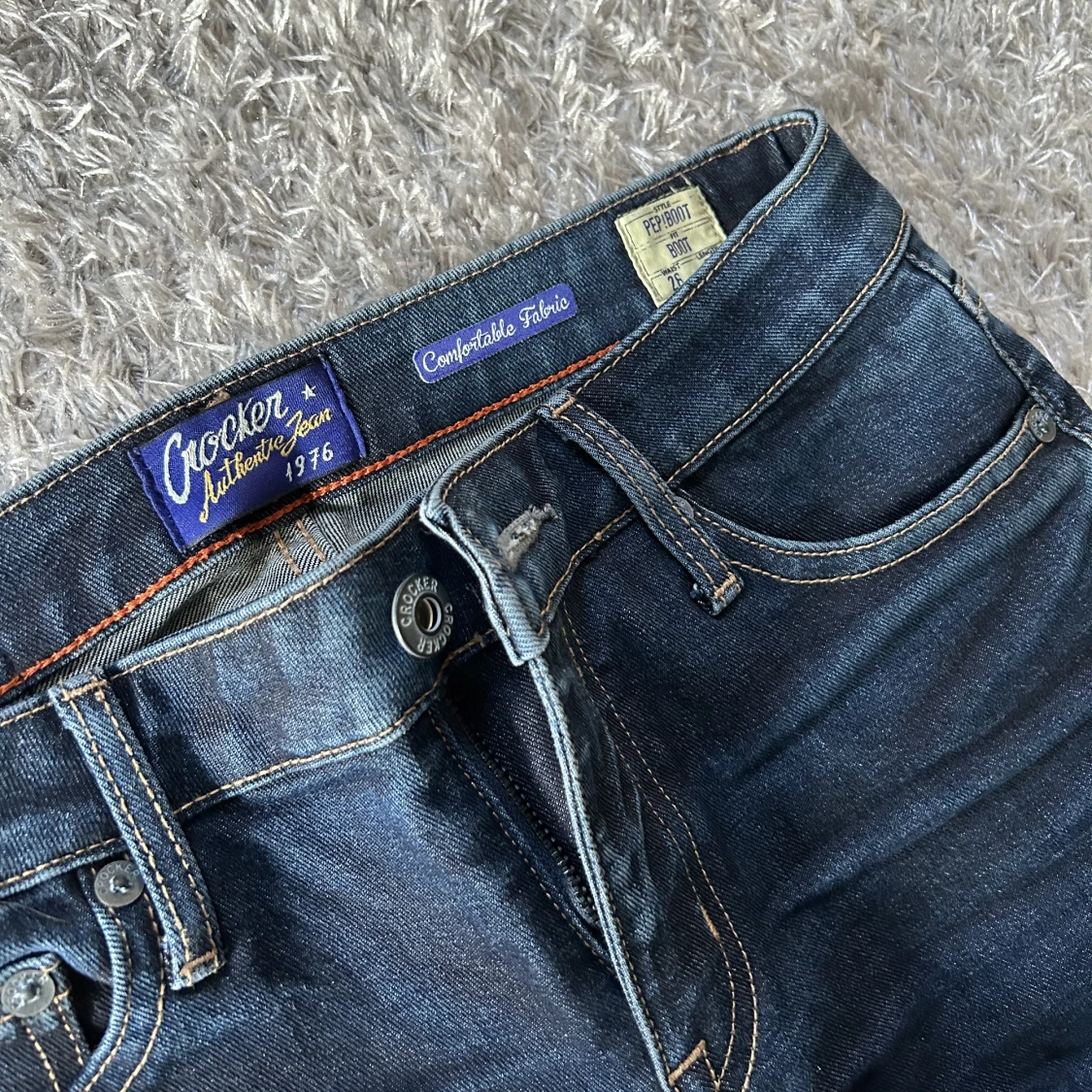 Säljer ett par mörkblå botcut low waist crocker jeans style-PEP!BOOT, fit-BOOTA✨W26 L33✨200kr + frakt!