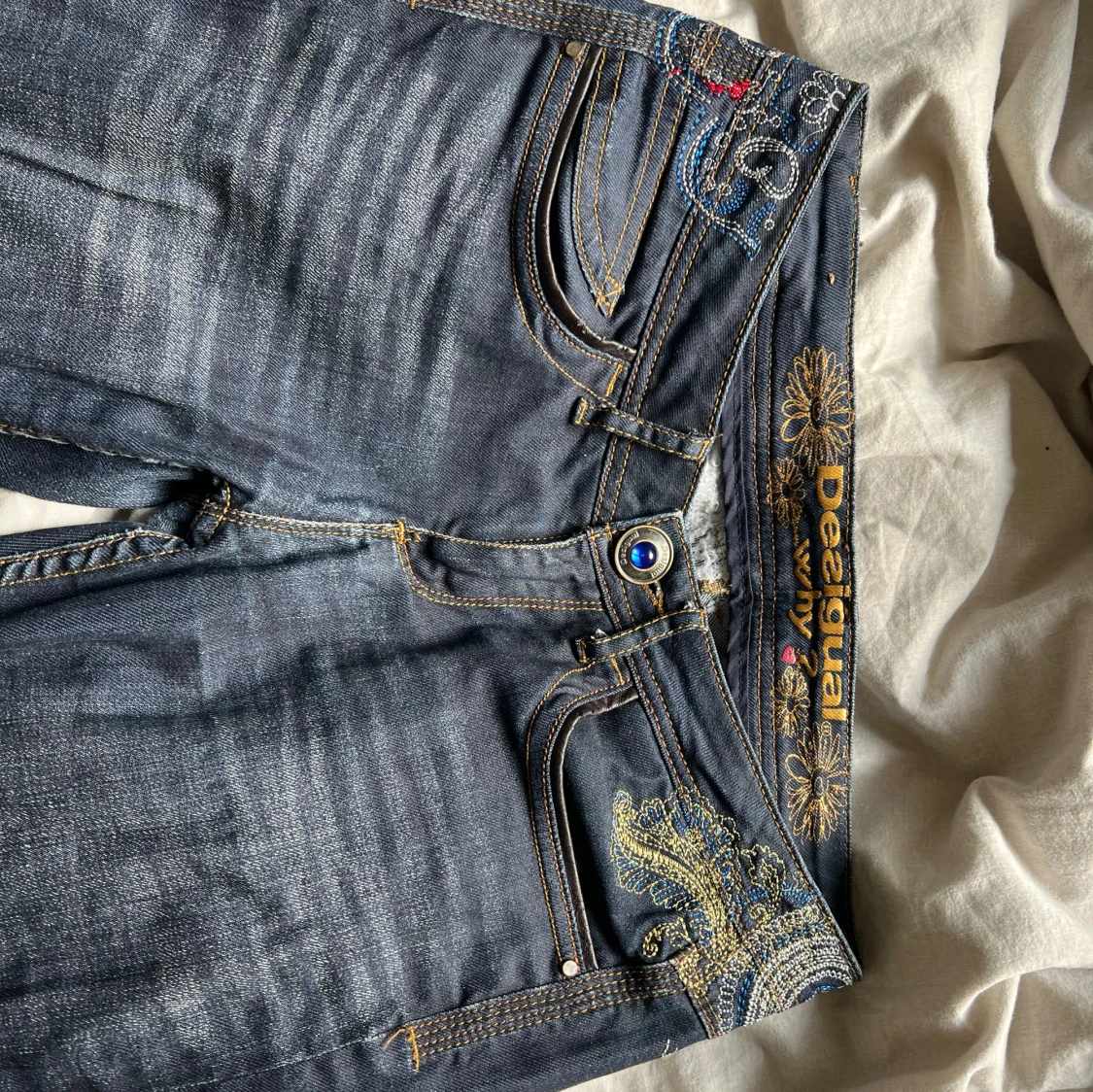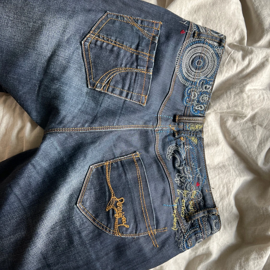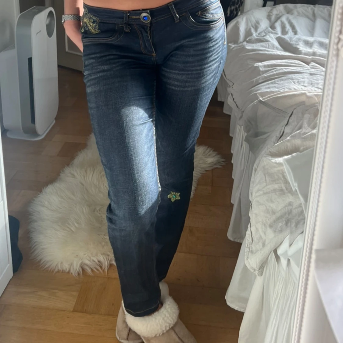 Säljer dessa ASSNYGGA lågmidjade jenasen med mönster och sömmar runt midjan och på bakfickorna. Super snygga med höga stövlar!😍