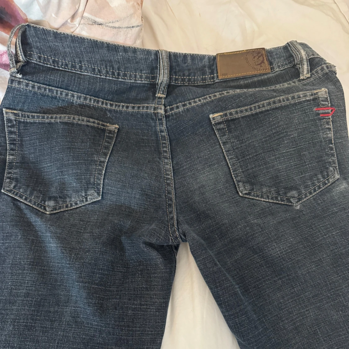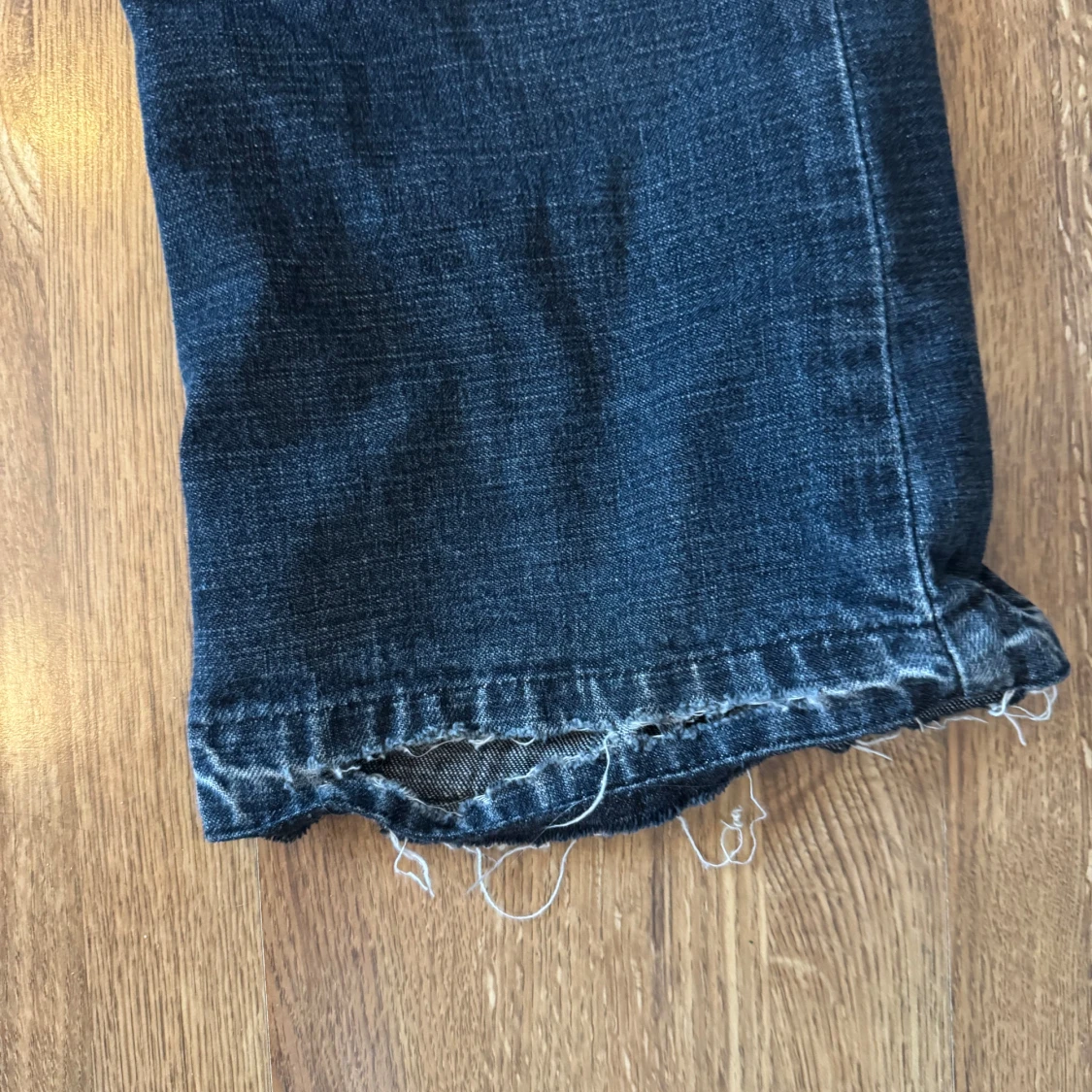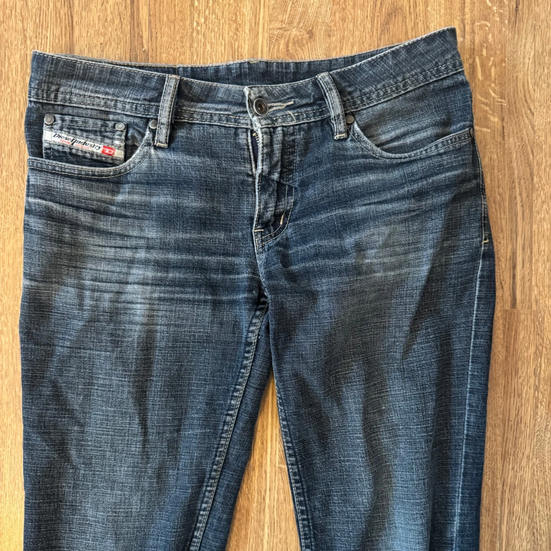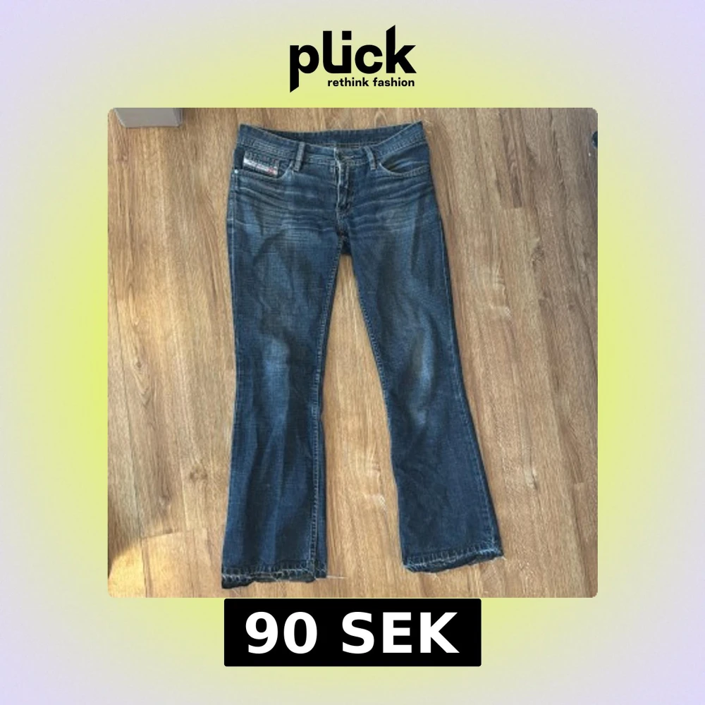 Jättesnygga lågmidjade jeans. Köpt second hand, med lite slitningar som syns på bilderna. Slitningen längst ner är på båda benen. Jag tycker inte att de stör något utan bara är en del av looken, hade använt själv om de inte var för små för mig!