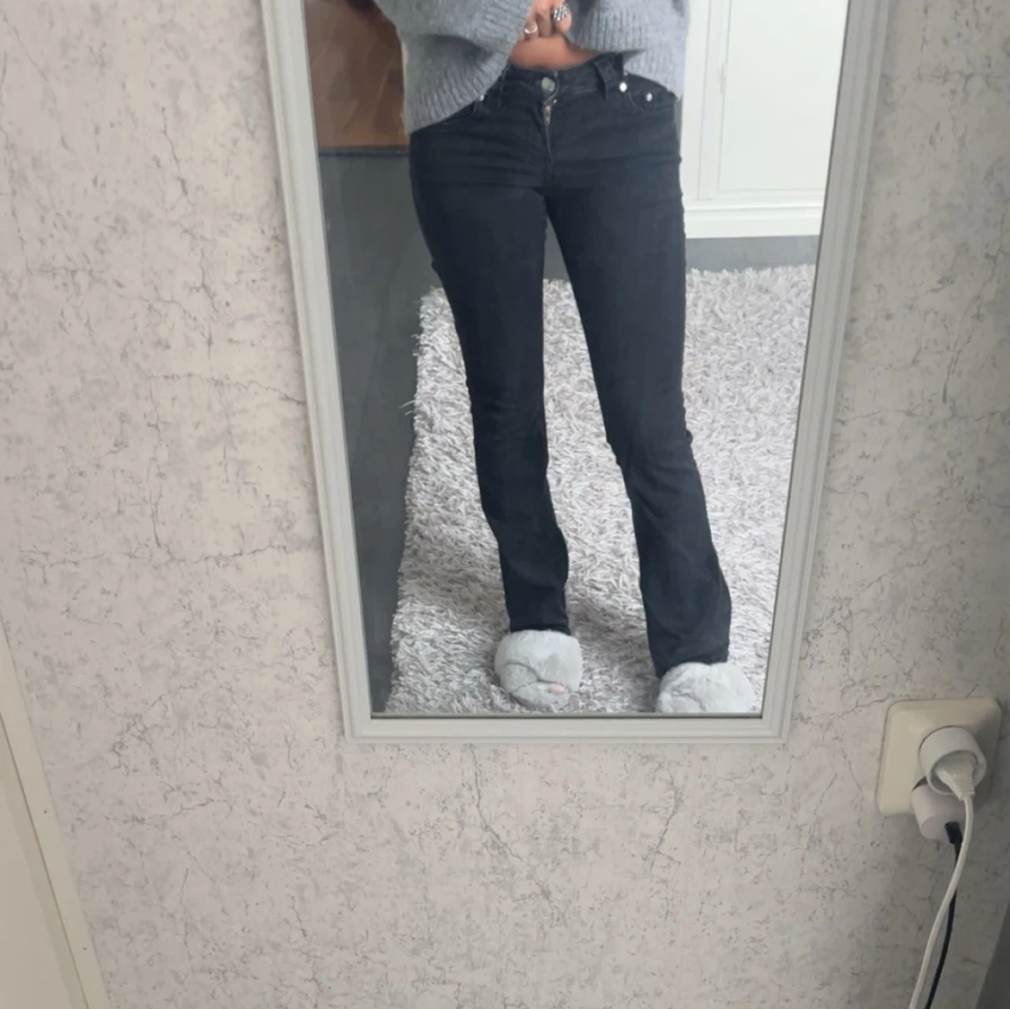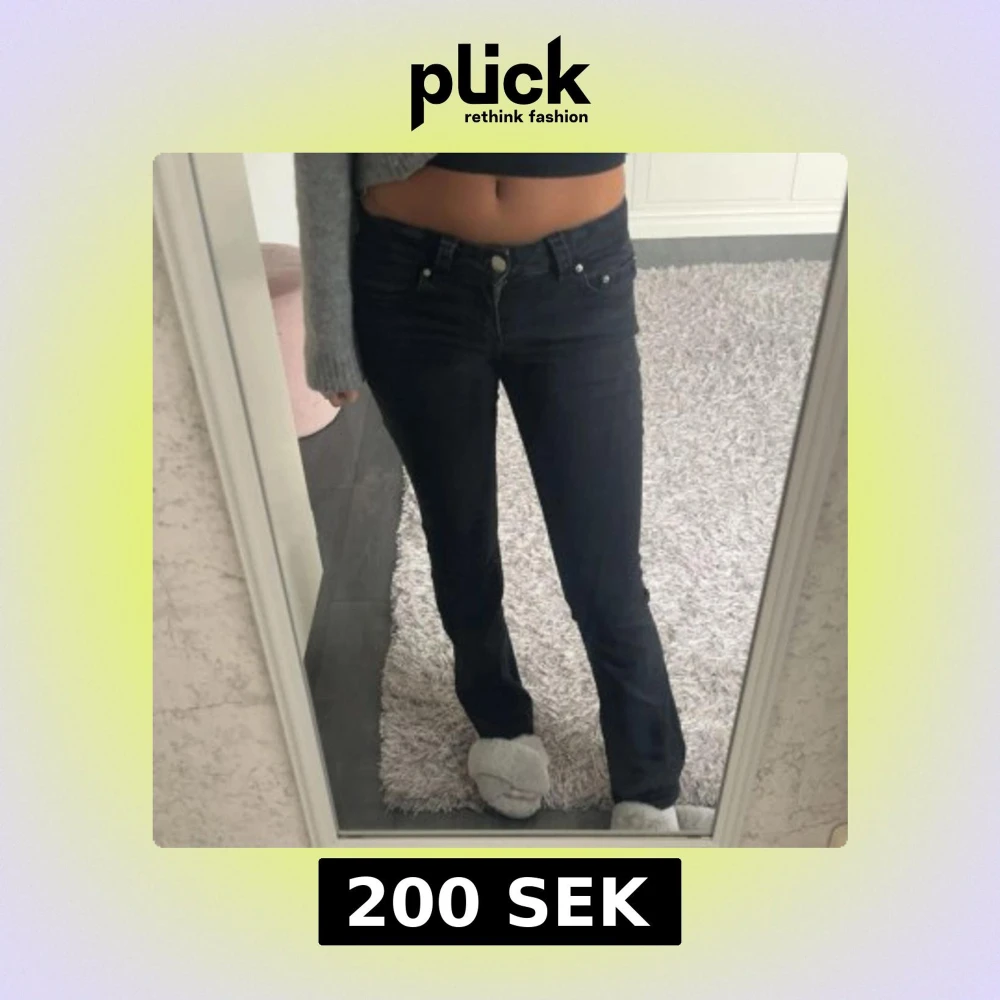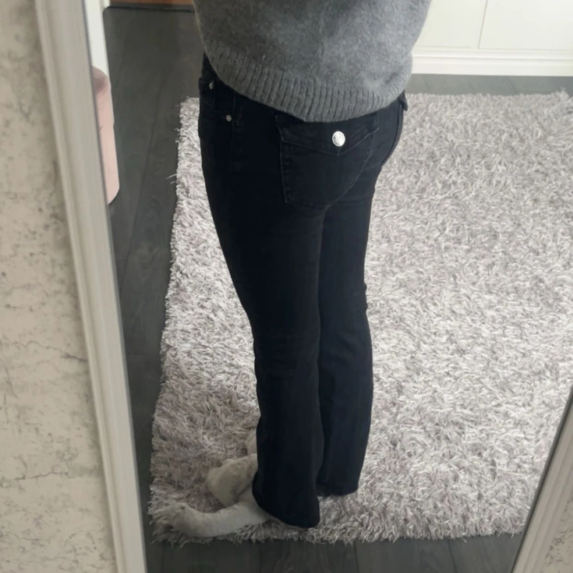 Snygga svarta jeans med bootcut jeansen har låg midja. De är från Ginatricot i storlek 36 och i skick 7/10 för att de är lite urtvättade i färgen men fortfarande jätte fina💕