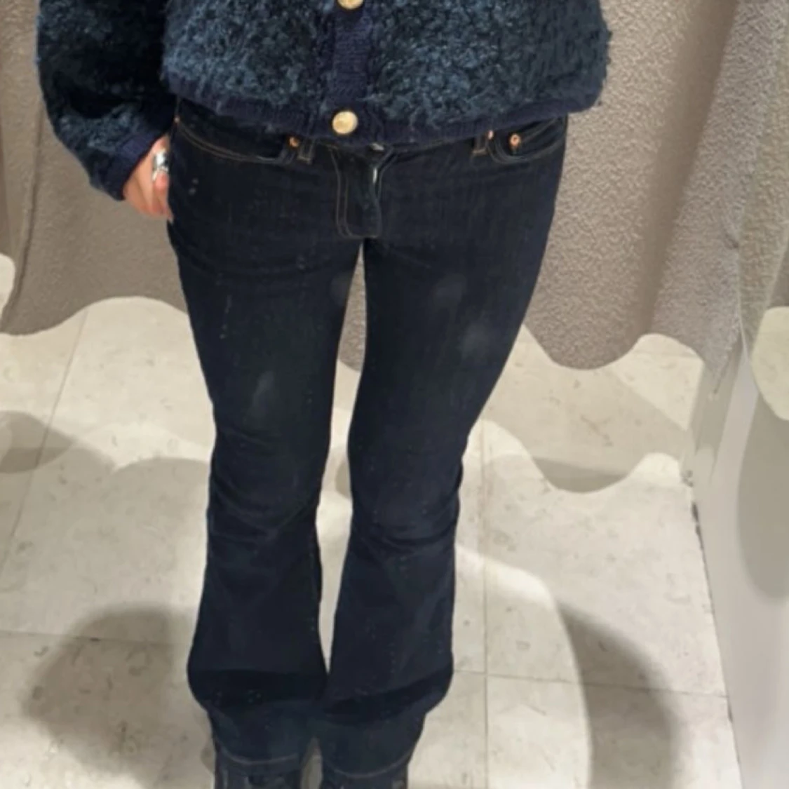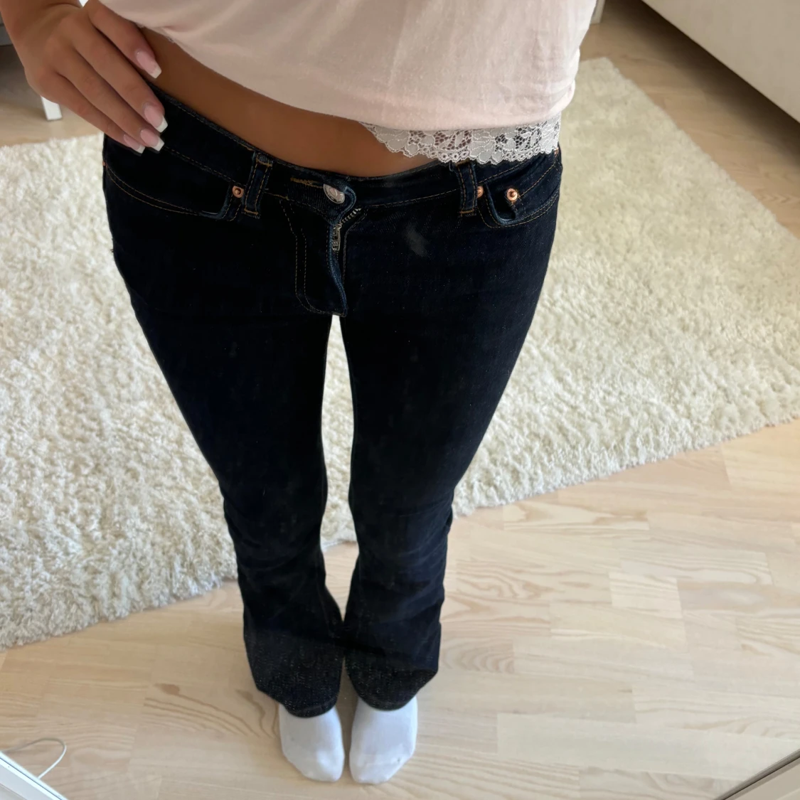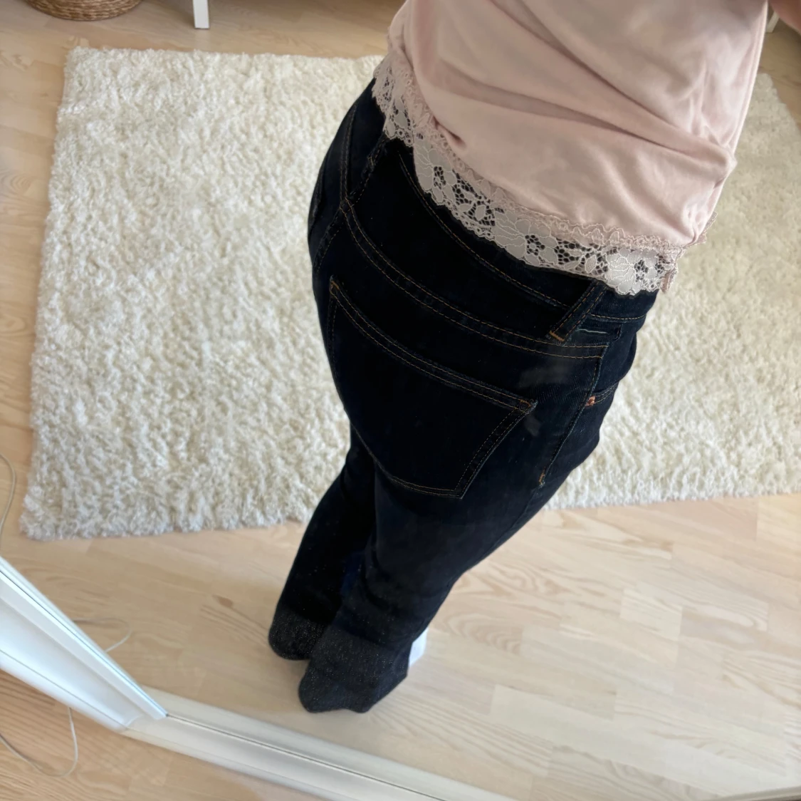 Säljer dessa jeans från gina då dem är försmå. Om jag minns rätt såldes de bara i butik och är i modellen low waist bootcut. Köptes för 1 år sen och inga defekter❤️Färgen är en väldigt fin blå! Köptes för 499kr