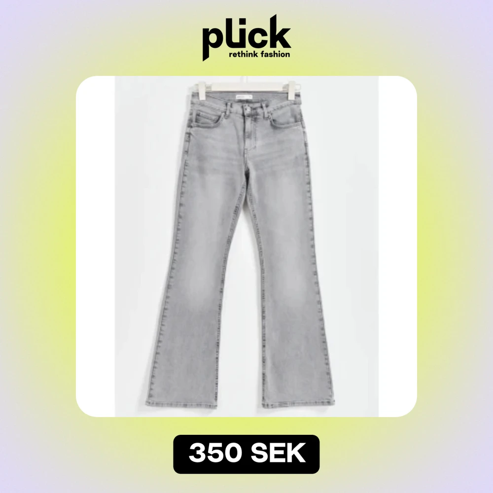 Supersnygga gråa lågmidjade bootcut jeans från Gina Tricot utan defekter! Endast använda 2-3 gånger💖nypris 499kr