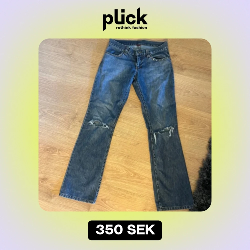 Säljer dessa sjukt snygga jeans från american Eagle med hål. Passar sjukt bra till hösten o e verkligen sjukt snygga❤️skriv för mer bilder!!! Midjemått:37cm innerbensmått:80cm Pris kan diskuteras såklart💋