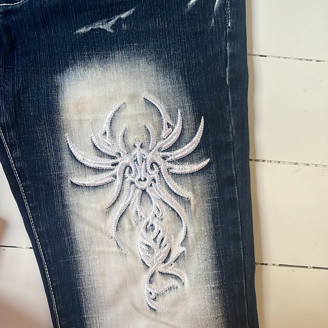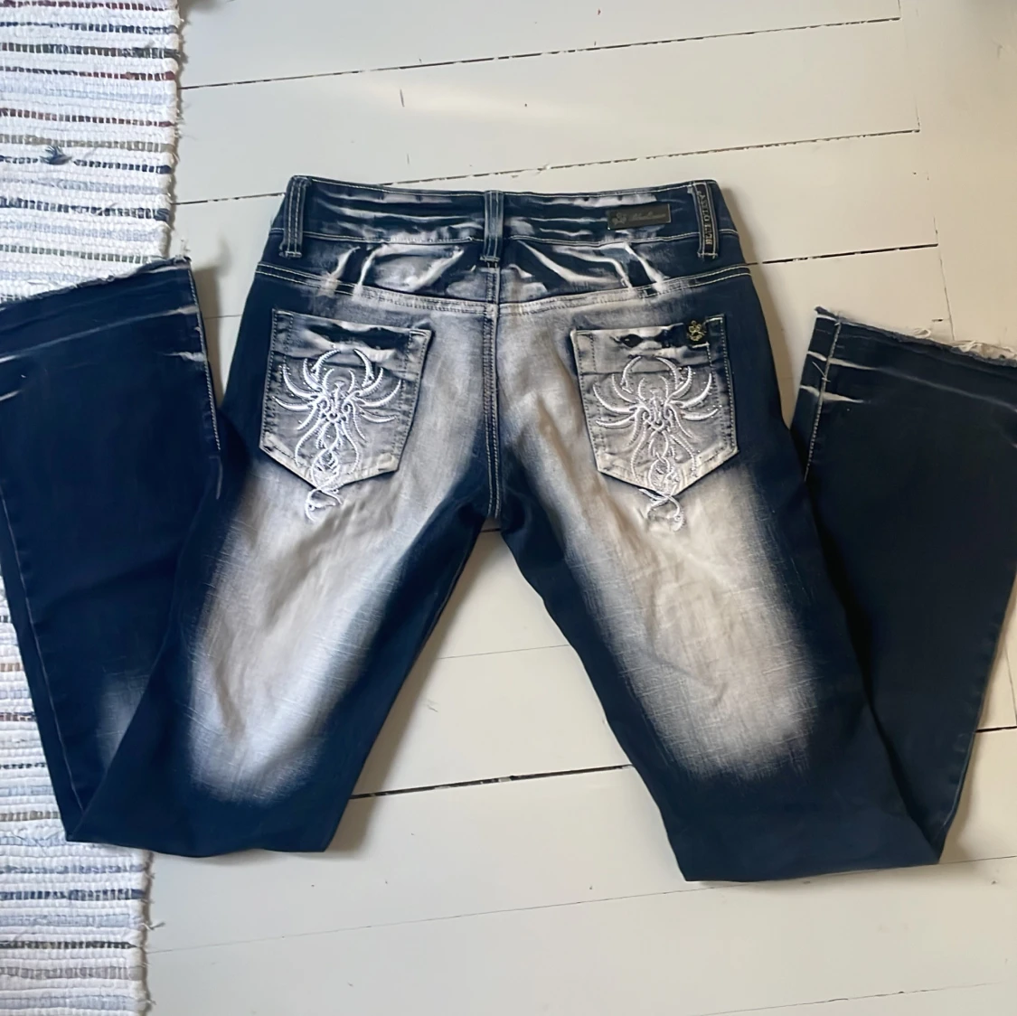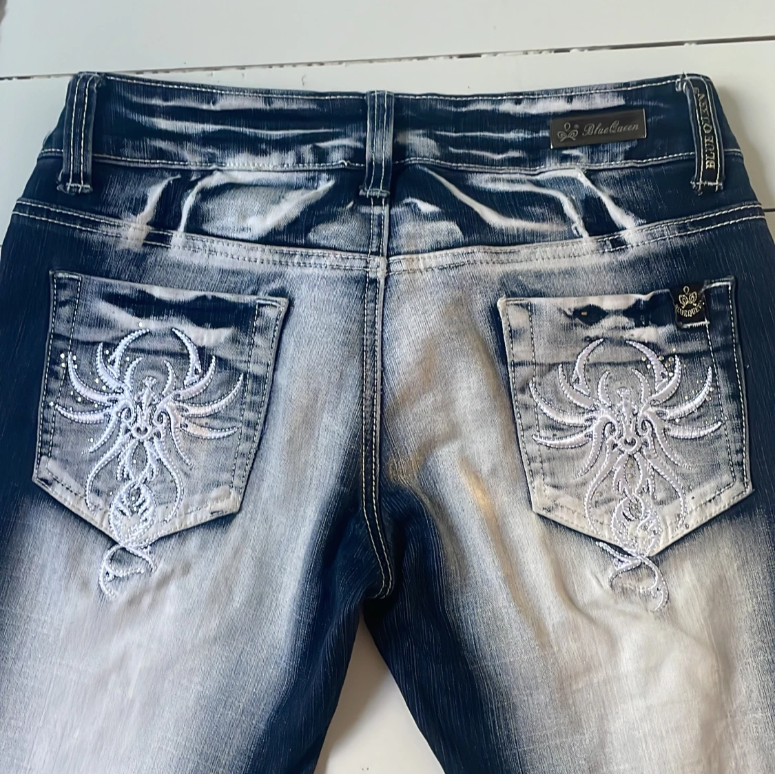 Unika blå jeans från Blue Queen ★ köpta från plick för 900kr 🩷 Stretchigt material, sitter skönt. Knappen sitter lite löst men fungerar fortfarande. Innerbenslängd: 80cm Midjemått tvärs över: 26cm