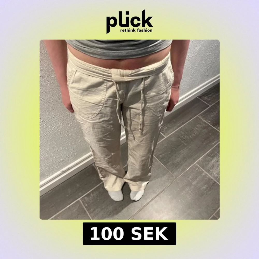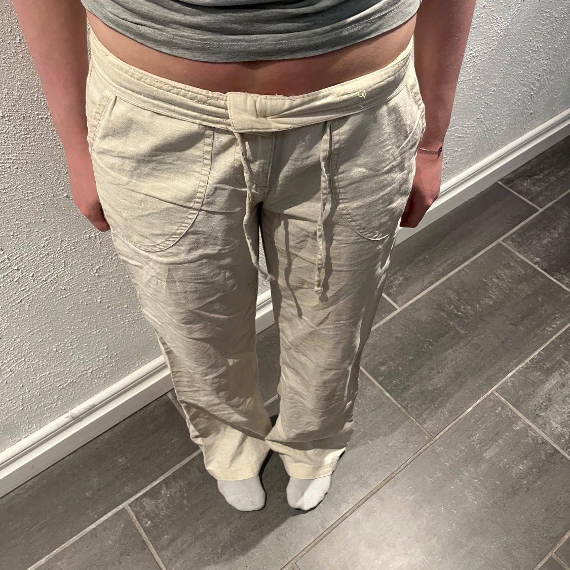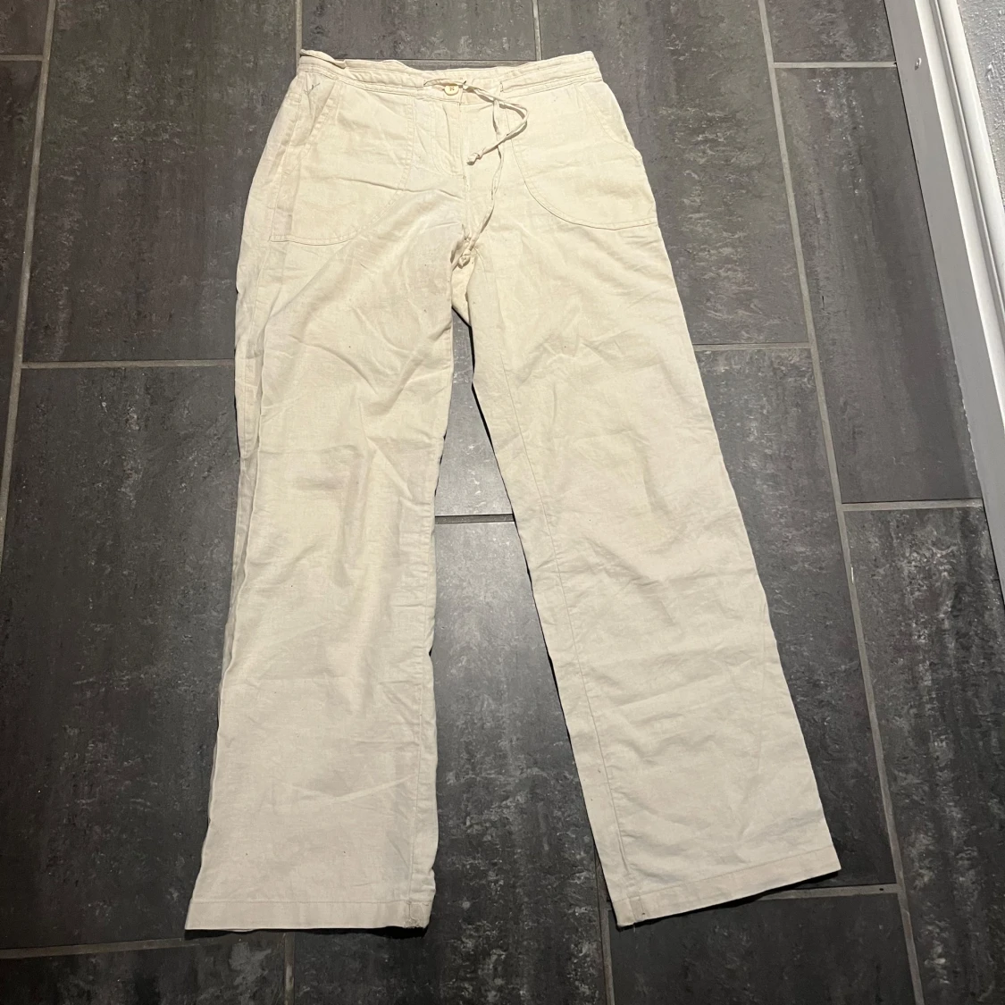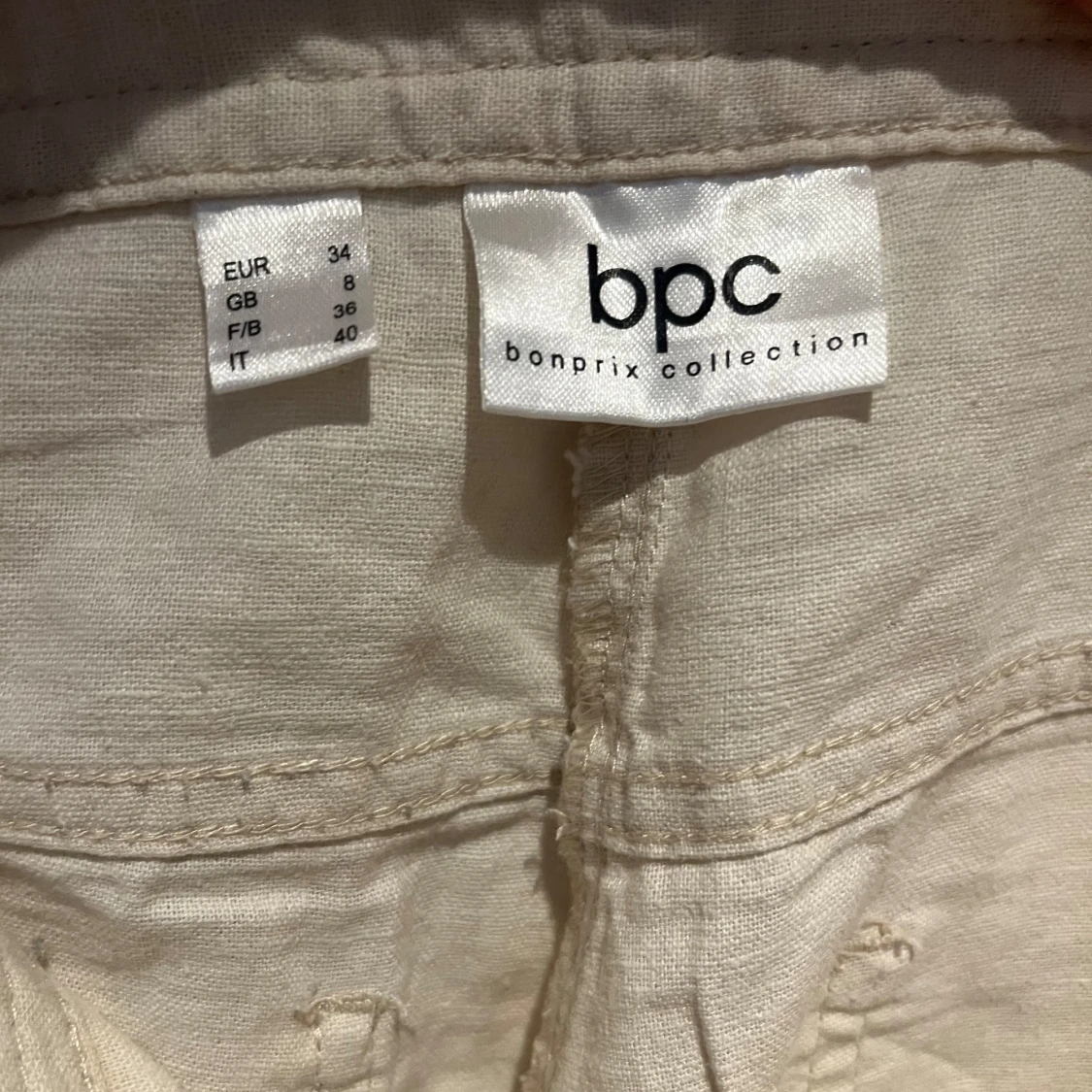 Säljer ett par beige linnebyxor från bpc bonprix collection i storlek 34. Byxorna har dragsko i midjan, raka ben och stora fickor framtill. Perfekta för en avslappnad och stilren look. De är lite slitna vid benen. Hör av er vid kommande frågor eller om fler bilder.💛