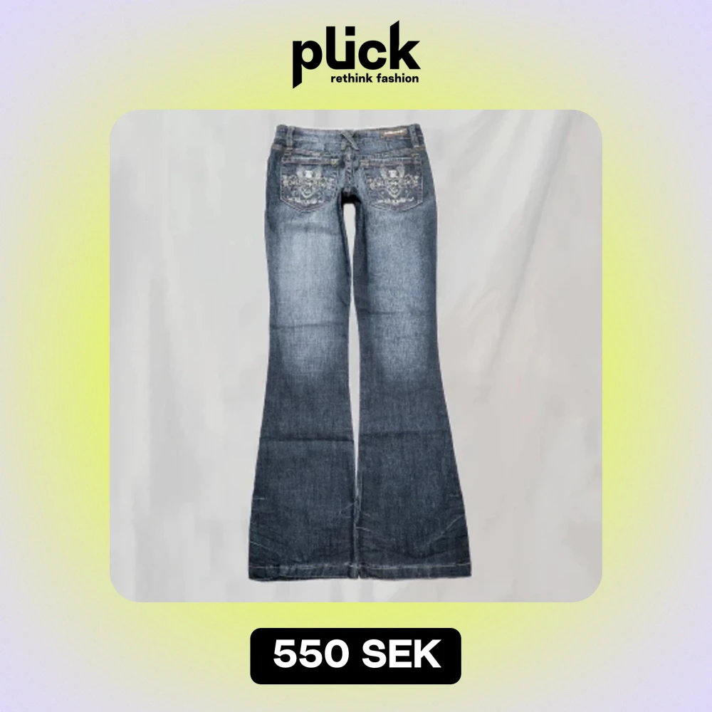 Midja:ca69 innerben:ca81 Jeans med detaljerade bakfickor i bootcutmodell. Storlek "0", uppskattar passa en XS. Något tunnare I materialet. Lite smånötningar enligt bilder. Något nötta lite "nertrampade" fotändar. Överlag fint skick!🤍