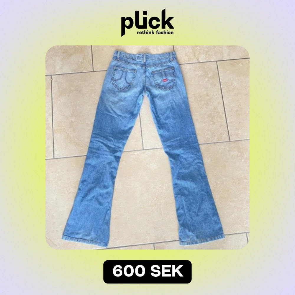 Säljer att par skit snygga vintage lågmidjade bootcut jeans som är från märket DeCon💕 Aldrig använda då de inte riktigt passar mig, vid fler frågor skriv privat! Midjemått: 36cm rakt över Innerbenslängd: 80cm