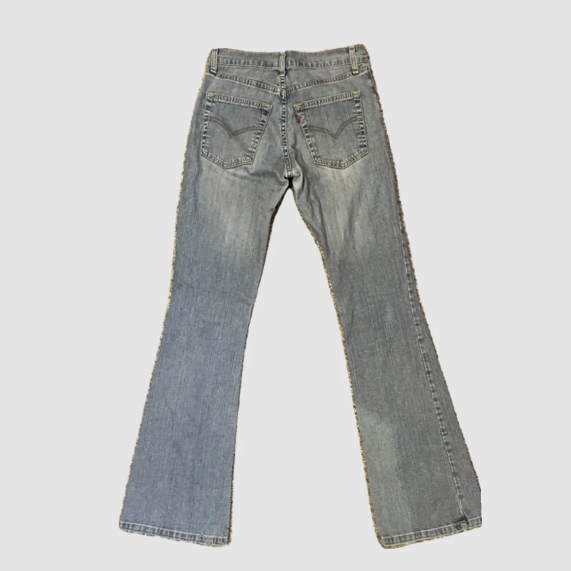 Ett par ljusblå lowwaist bootcut jeans🫶 jätte snygga och sköna 🫶dem är stretchiga ‼️