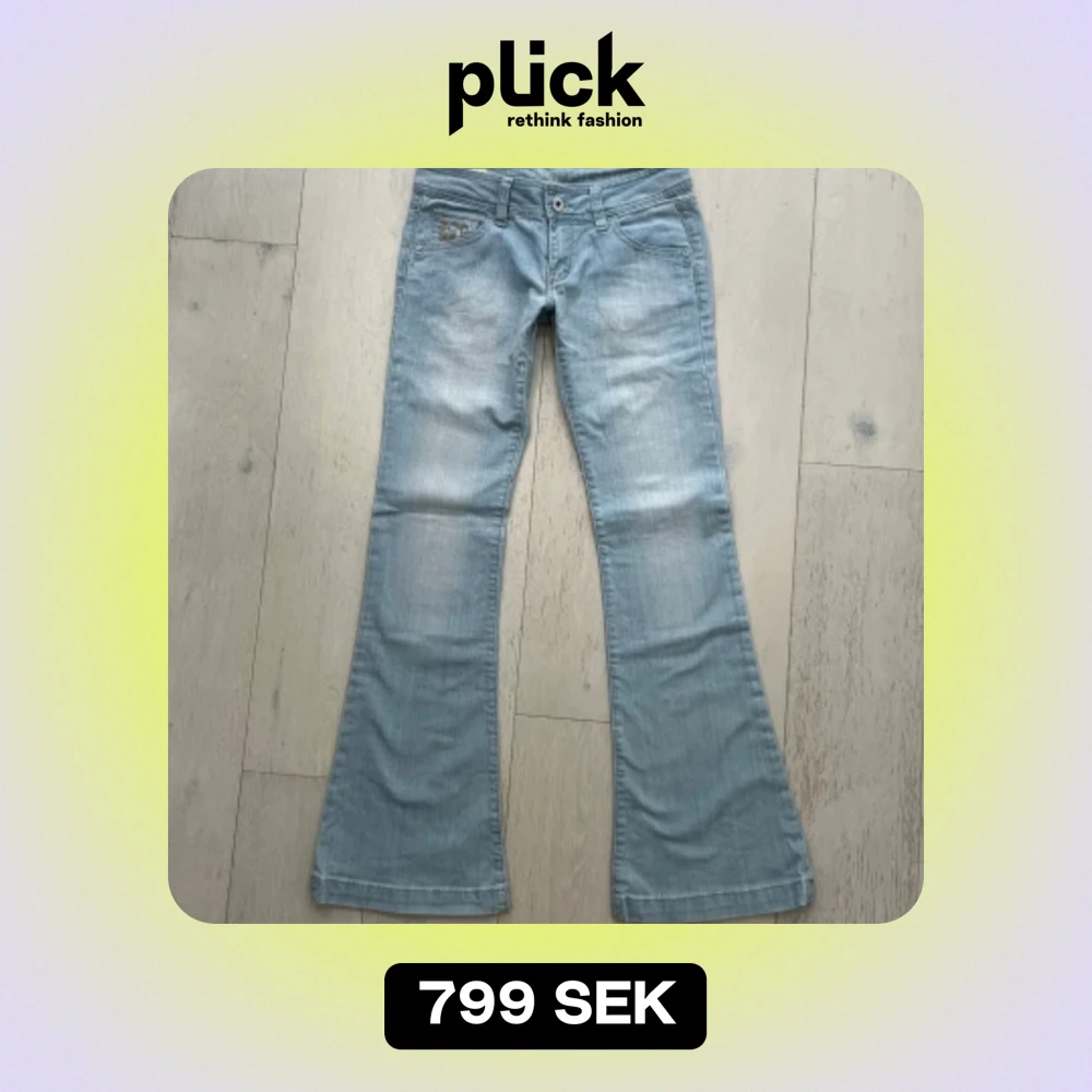 Dösnygga Lågmidjade och utsvängda jeans i superbra skick som jag köpt här på Plick för 900kr 💛 Midjemått 38, grenhöjd 19, innerbenslängd 82 och längd 102 💛