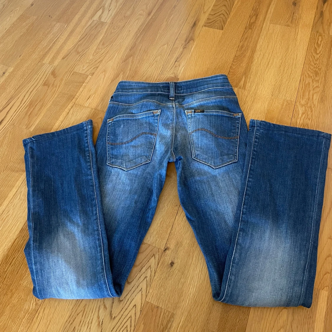 Snygga blå bootcut jeans från Lee med låg midja. Midjemått 35 innerbenslängd 74 ytterbenslängd 95. Mått och första bilden är tagen från förra säljaren! Säljer då dom är lite för små för mig!🥰🥰
