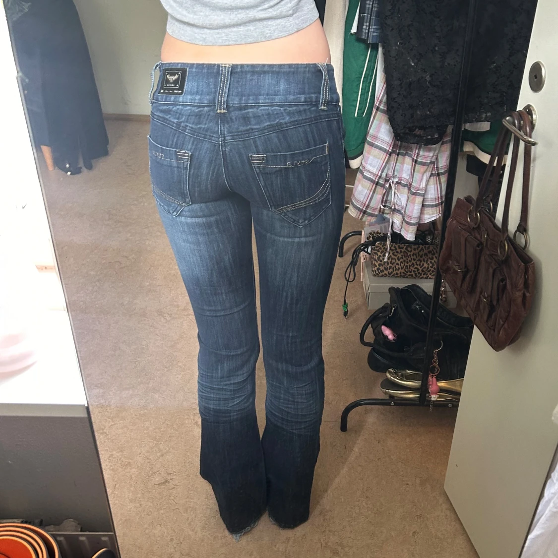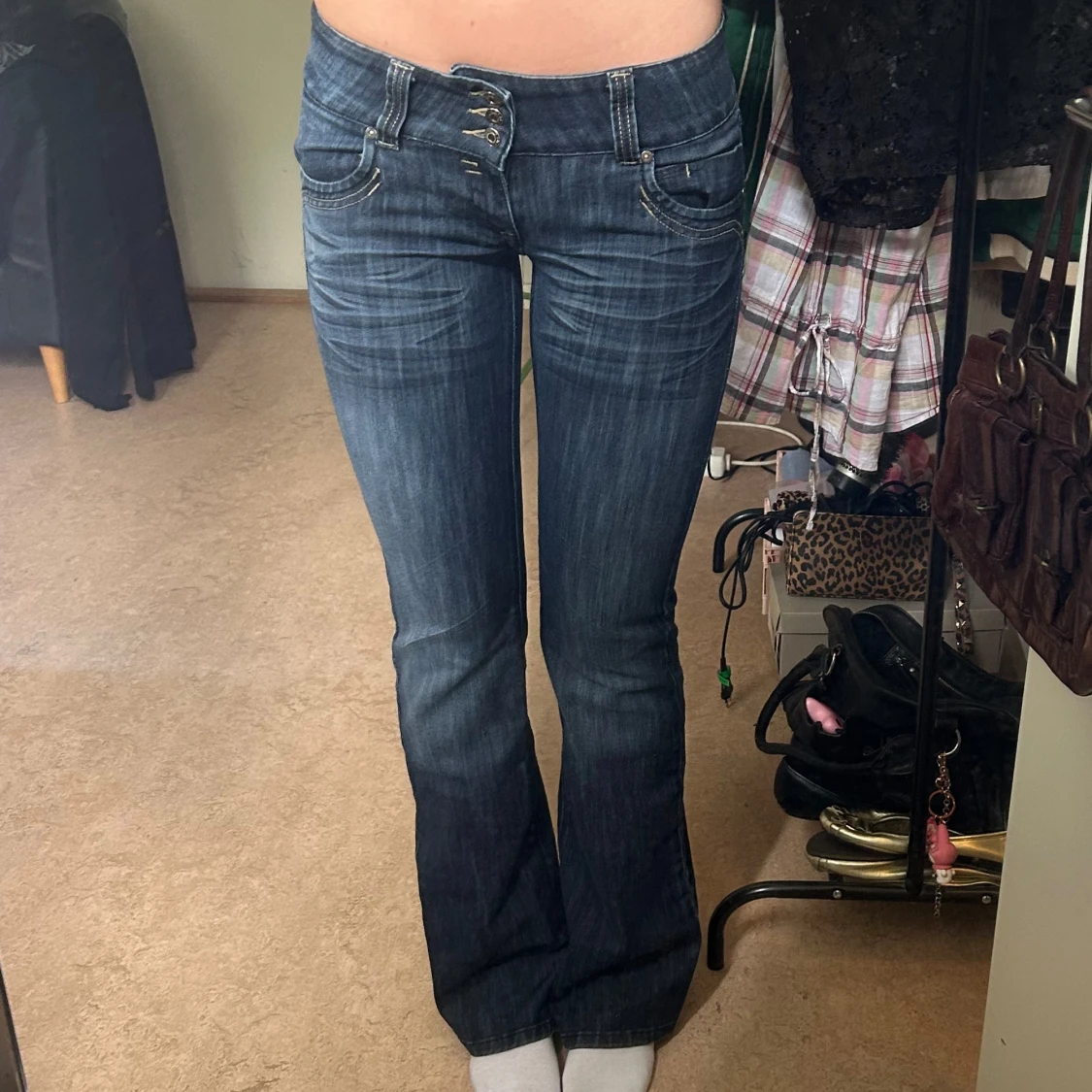 As snygga jeans som tyvär är lite för små! Är i Storlien 38, midjemått 37 cm tvärs över och innerbenslängd på 88 cm, jag är 178cm🩷🎀