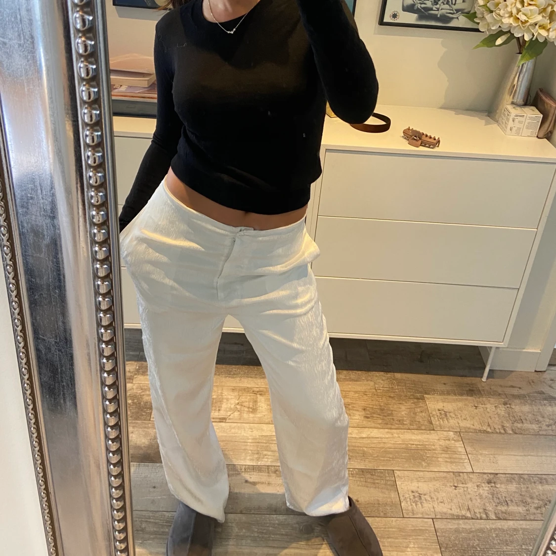 Fina vita byxor i skönt material. Inte kommit till användning så är som helt nya. Super sköna och sitter perfekt lågmidjat! 😍 Köpare står för frakt!