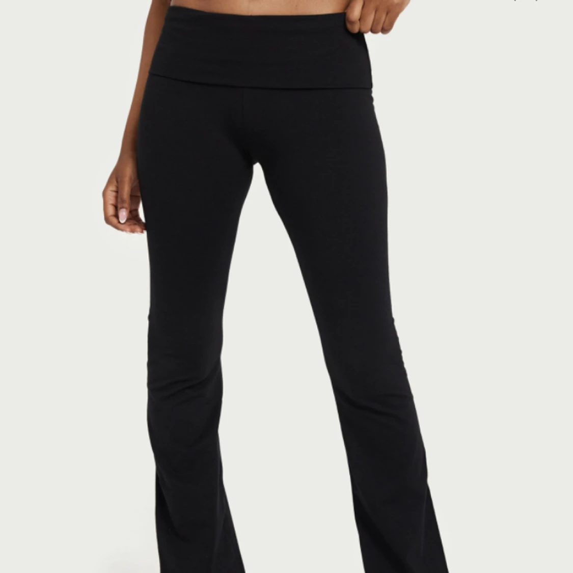 Säljer dessa lågmidjade yoga pants ifrån Nelly som man kan vika ned i storlek xs. De går med till fötterna på mig som är 173cm😁