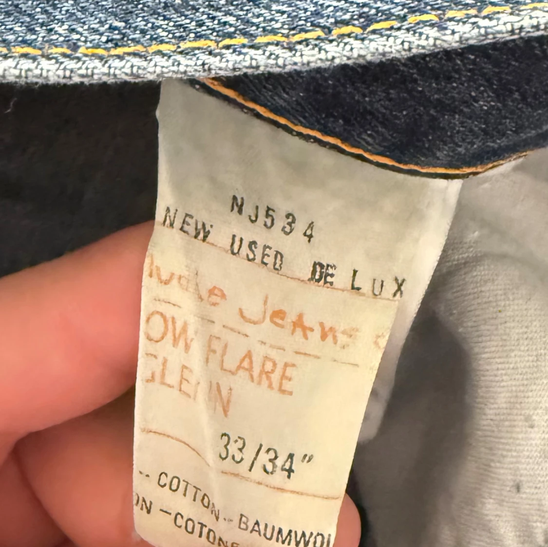 Tjena! Säljer dessa vintage flare/bootcut nudie jeans i modellen LowFlareGlenn, jeansen är i storlek W33/L34 och är i fint skick, hör av dig vid funderingar!🙌
