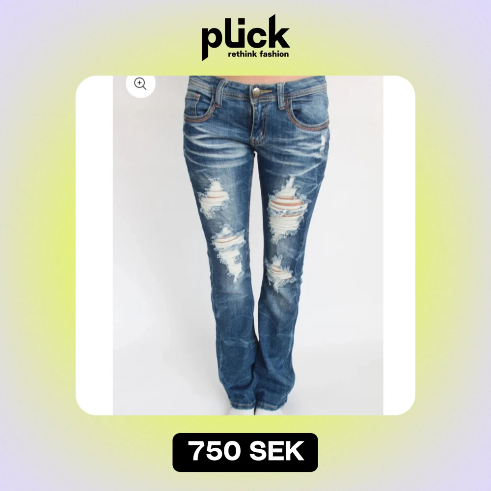 Super coola low waist bootcut jeans med hål, köpta second hand! Inte mina bilder, köpta för 850