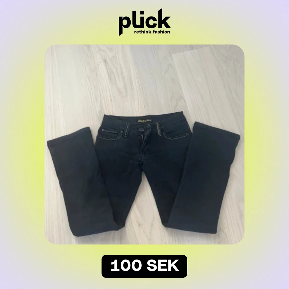 Svarta jeans med coola detaljer, säljer då de är för små för mig. Midjemått: 34cm och innerbenslängd: 71cm💗