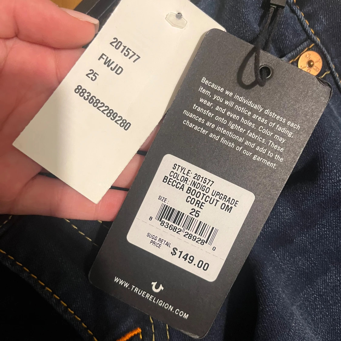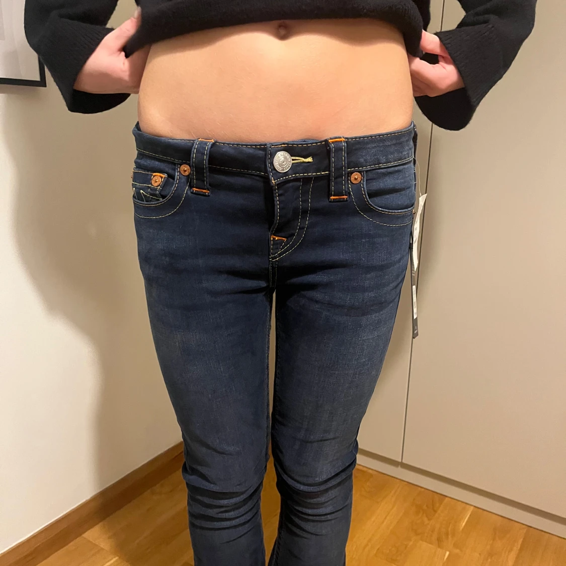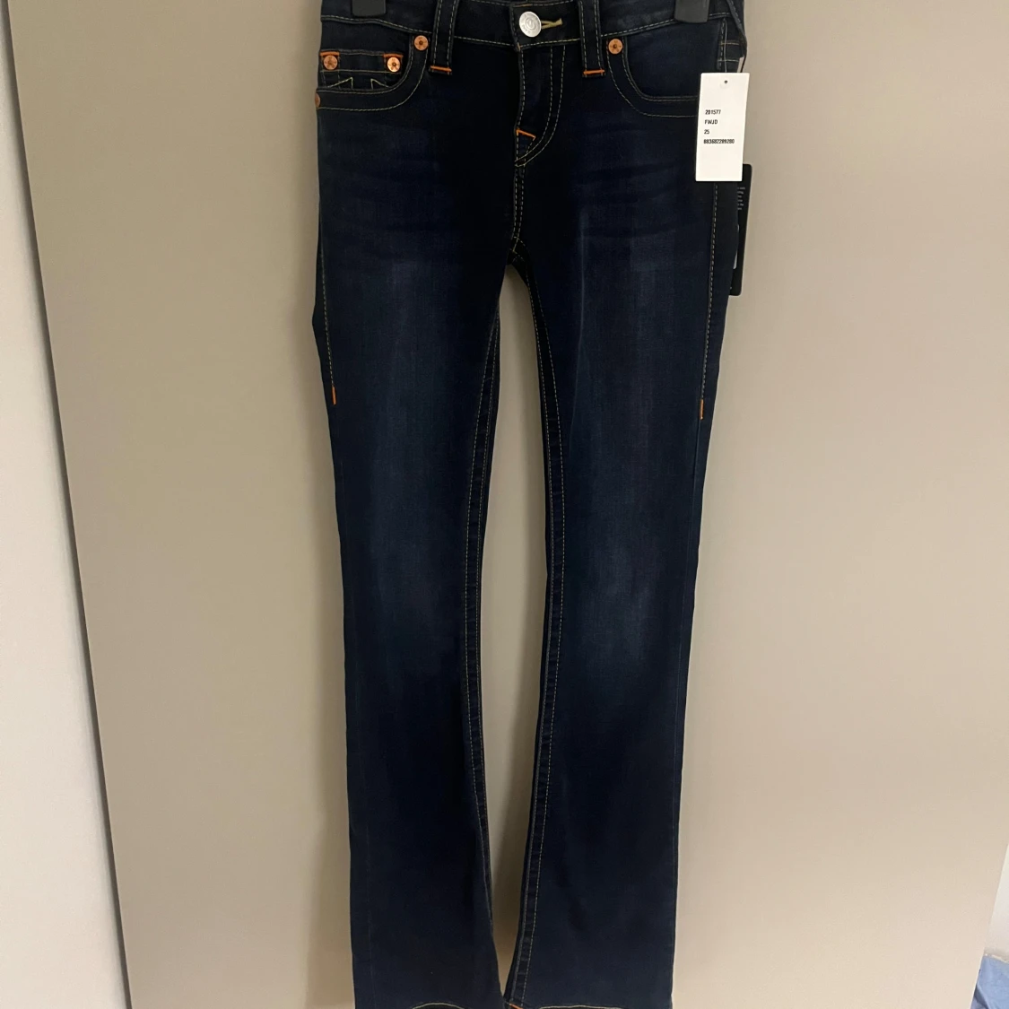 True religon jeans som är helt oanvända i storlek W25 med lapparna kvar. Säljer då de tyvärr är för långa. Köpta i usa för 1500. Lågmidjade och bootcut