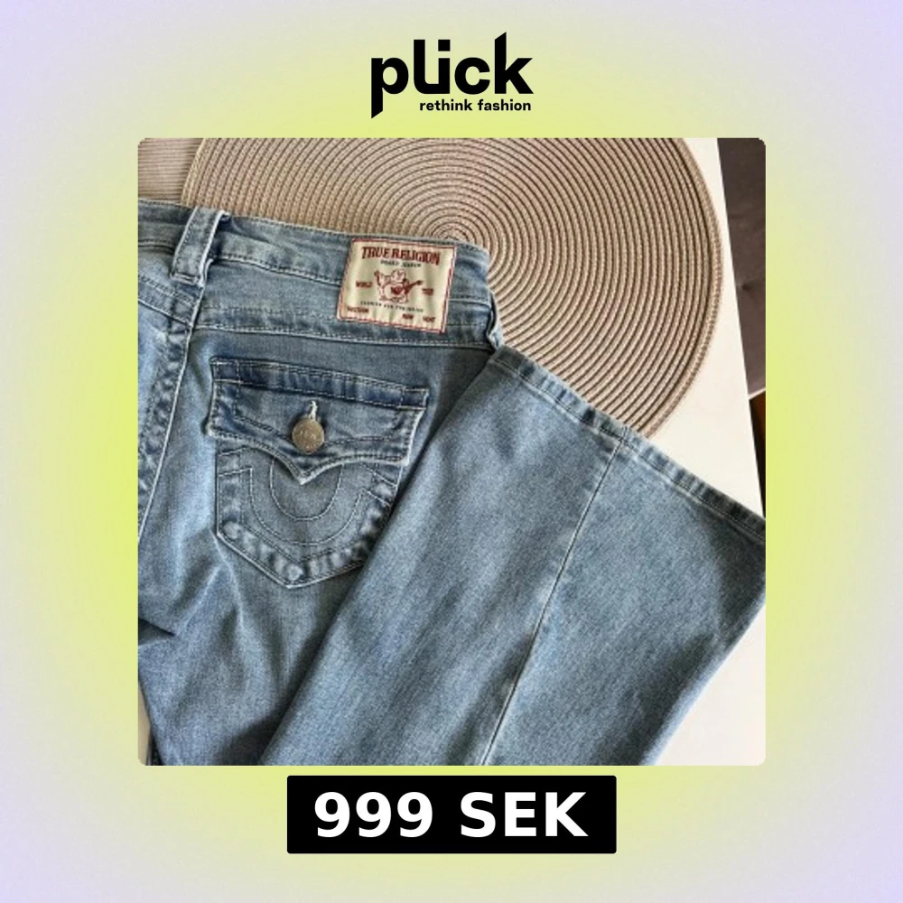 Supersnygga ljusblå jeans från True Religion, helt oanvända endast testade! Midjemått är ca 36 cm rakt över och innerbenslängden är ca 81/82 cm 💕 Jag är ca 166 å de passar mig bra 💕