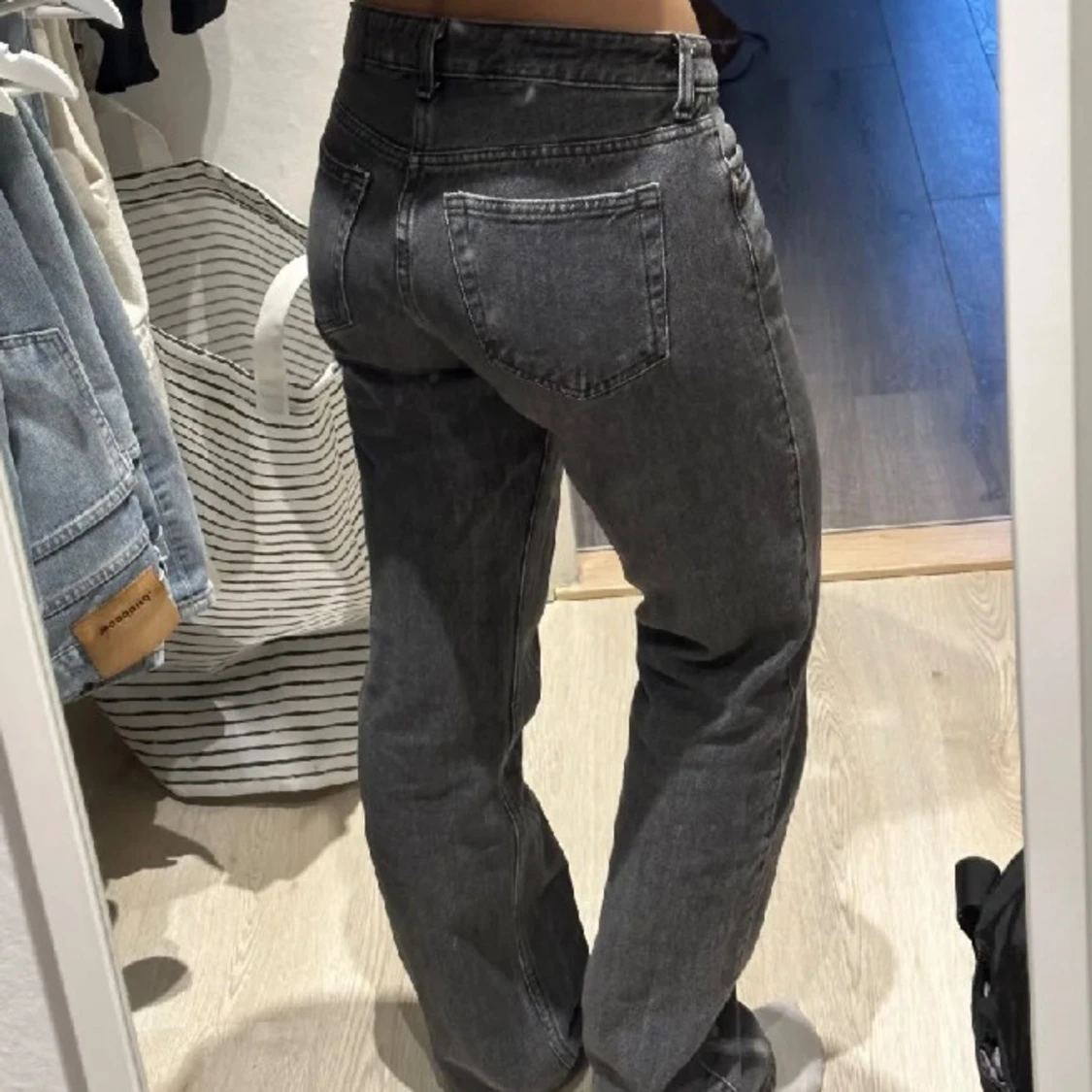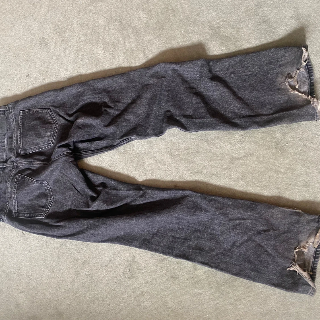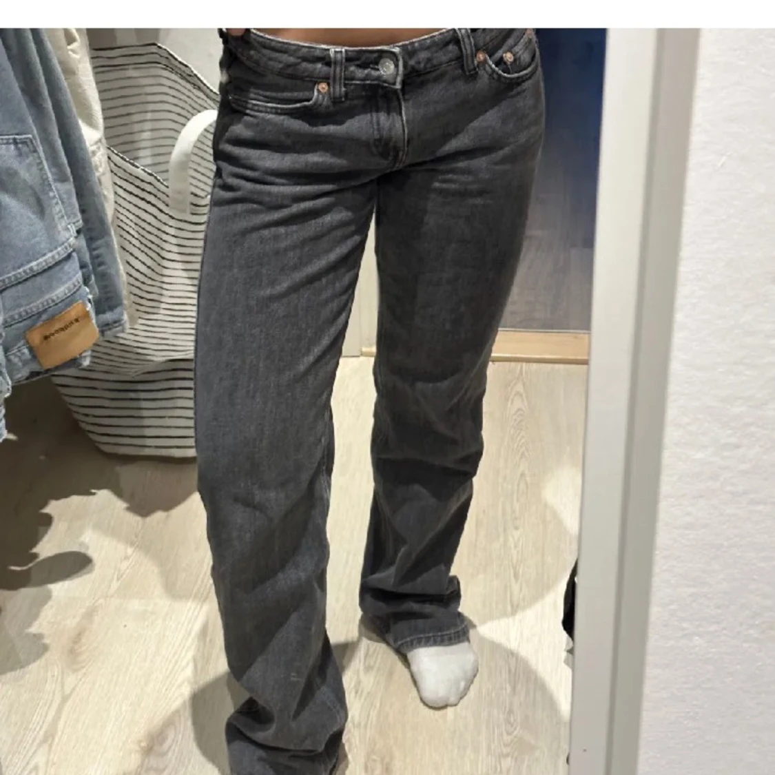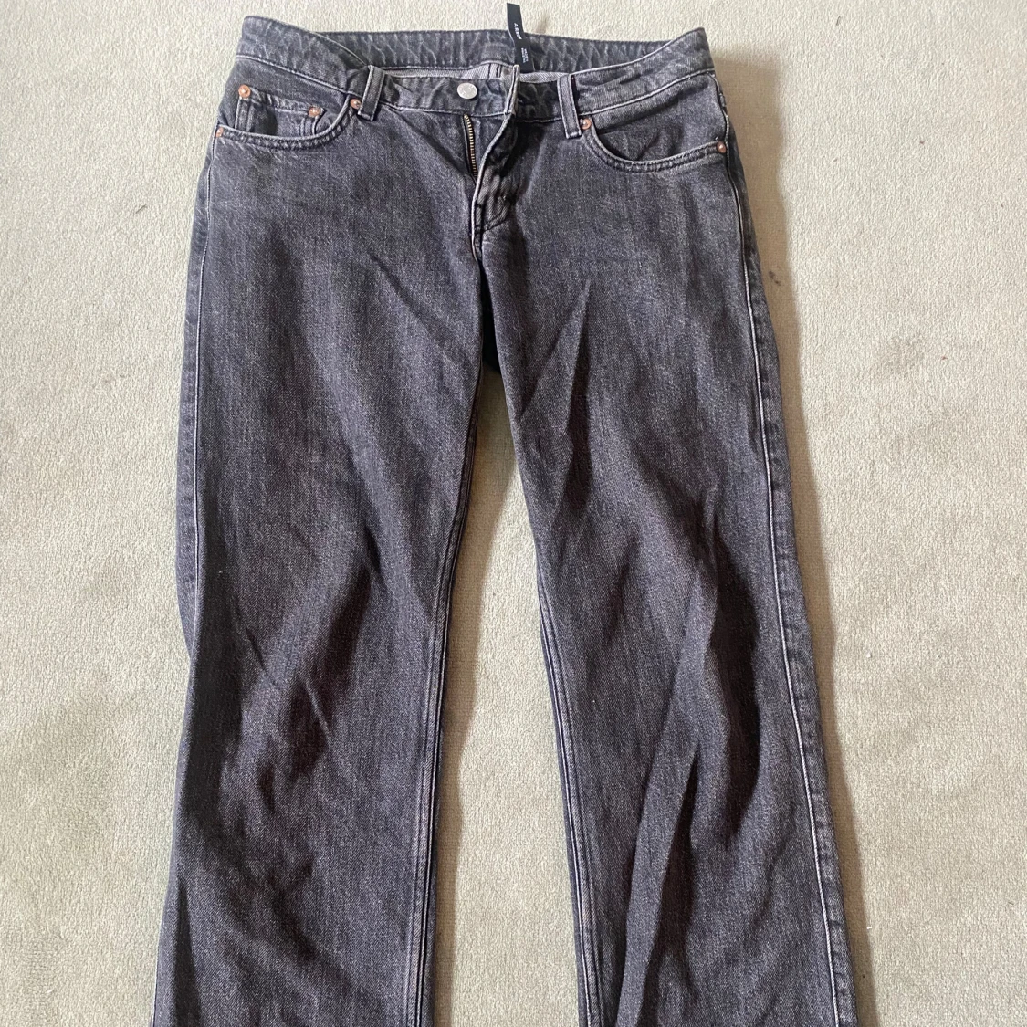 Lowwaisted weekday jeans i grå/svart färg. Som ni ser på sista bilden så är de lite slitna där nere💗