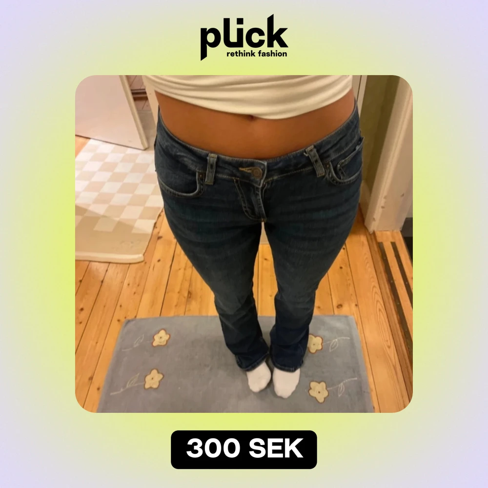 Super snygga snygga mörkblå jeans i bra skick. De är Low/midwaist o bootcut. Åergekt mörkblå färg ❤️💝