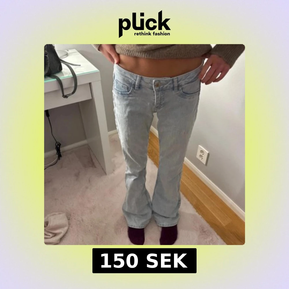Säljer dessa super snygga low waist boot cut jeans i nyskick! Storlek 36/S🤍 Om ni undrar något är det bara att höra av sig!