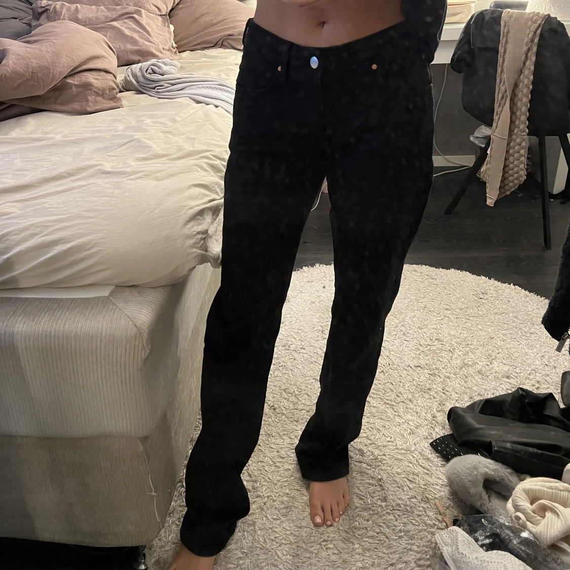 Säljer ett par low waist jeans ifrån bikbok! Storlek 26 längd 32
