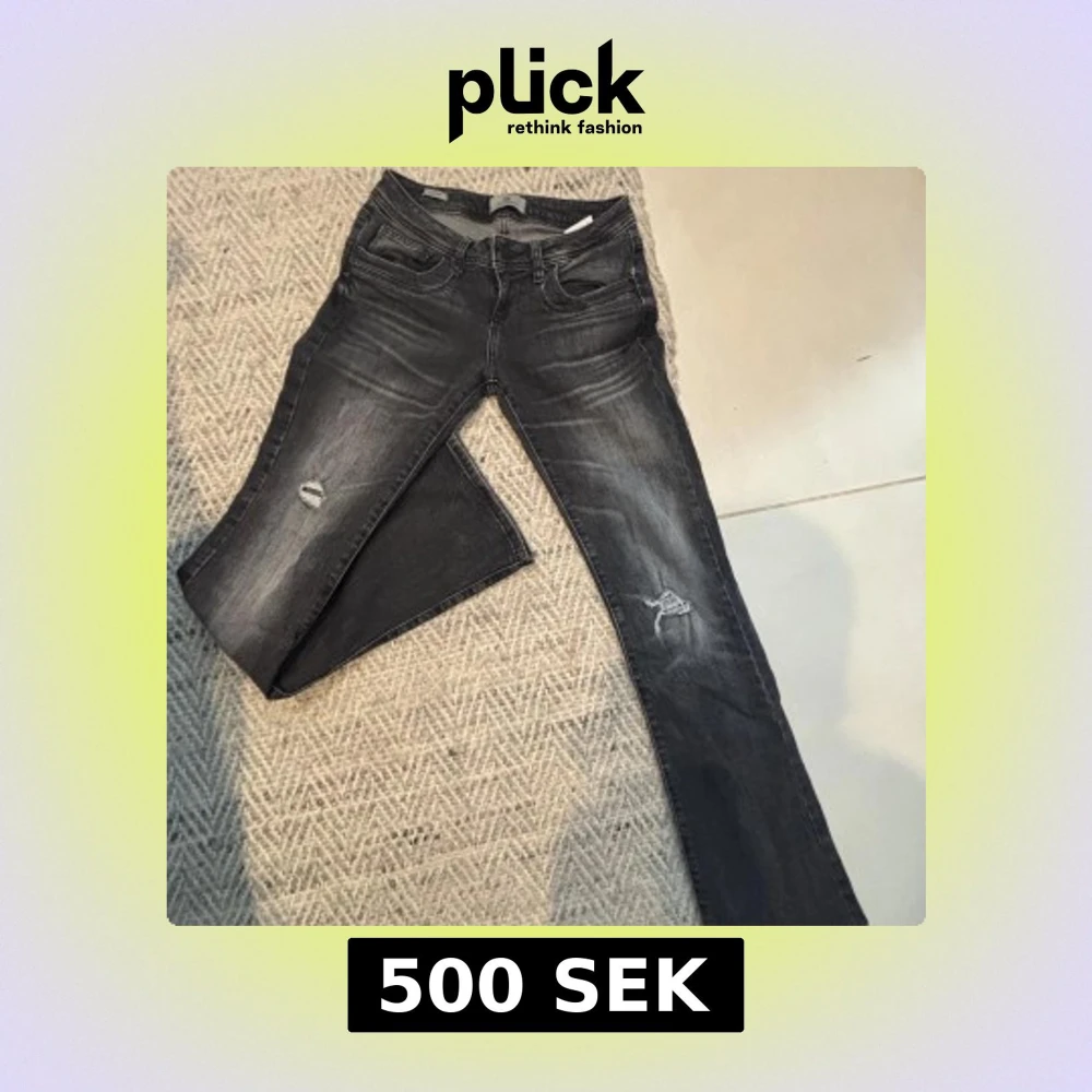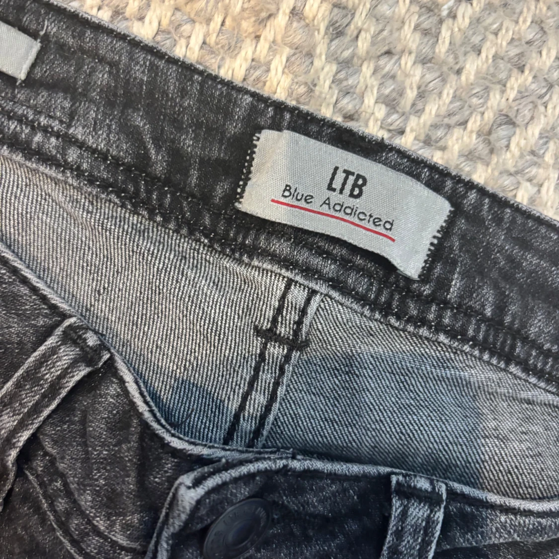 Säljer ett par svarta jeansbyxor från LTB med slitningar på båda benen. Lågmidjade!!