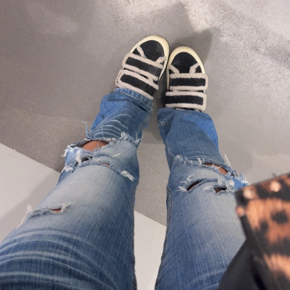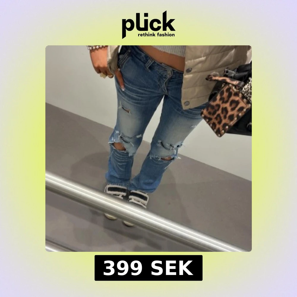 Lågmidjade jeans med hål, har gjort hålen själv så har det i baktanke men fortfarande skit snygga, är 170cm och dom passar perfekt på mig 🥰
