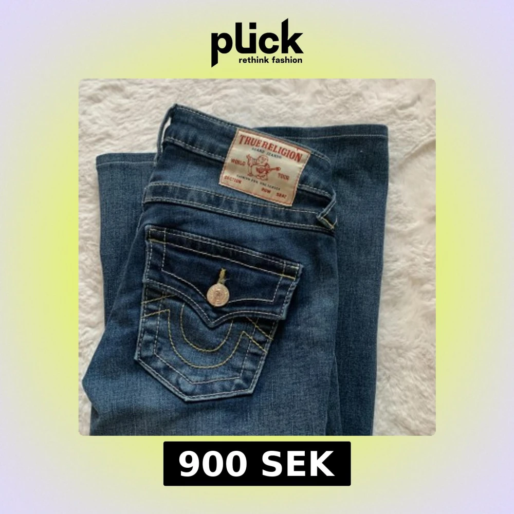 Snygga blå jeans från True Religion med låg midja och flare-stil. De har en klassisk femficksdesign och dekorativa sömmar på bakfickorna. Perfekta för en avslappnad look. I storlek w23 . De är endast provade .🩷modellen joey! Priset kan diskuterats vid snabb affär !