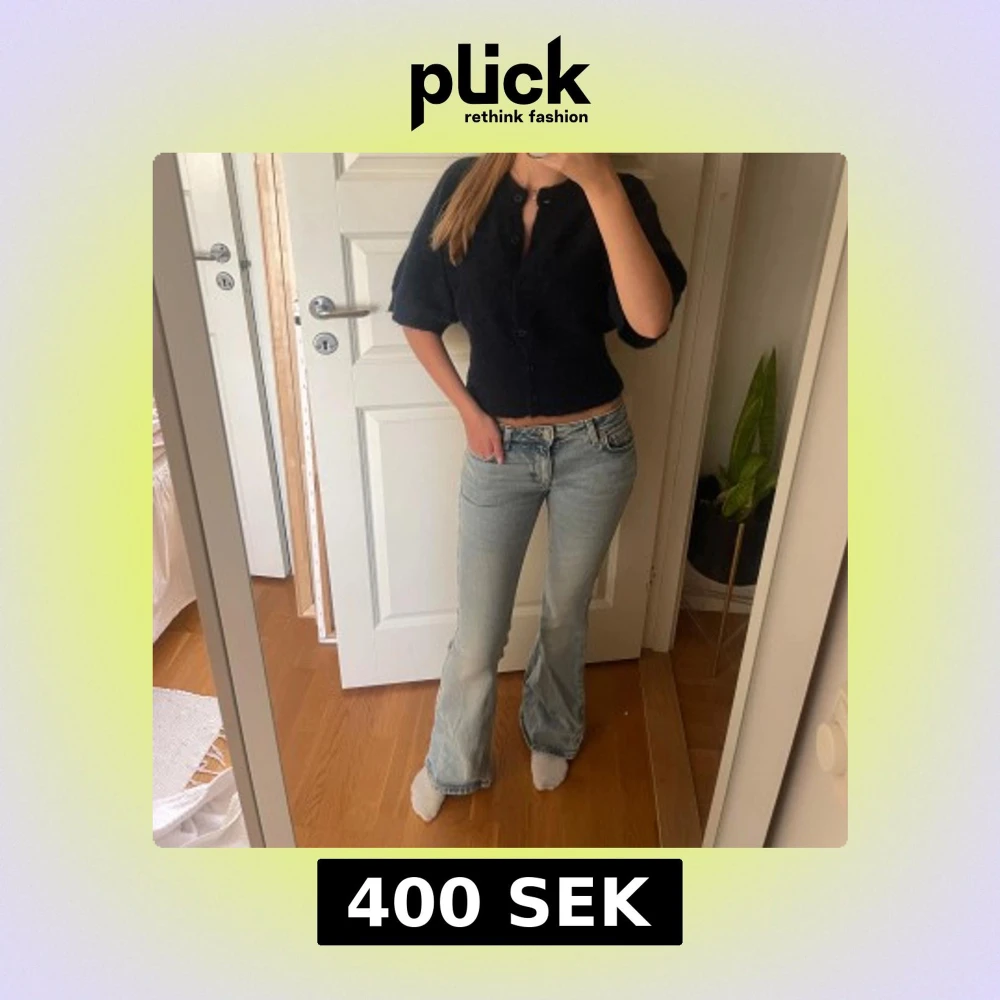 Säljer ett par ljusblå jeans med bootcut och låg midja från weekday! Perfekta för hösten och passar till varje outfit. Hör av dig vid frågor💕 (jag är 167 cm läng och har innerbenslängd ca 80 cm)