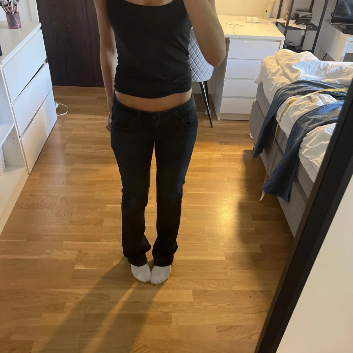 Säljer dom mörkaste blåa ltb jeansen i Storlek 25/34 långa på mig som är 168!❤️ skriv privat för frågor eller så,tar egna bilder när jag är hemma igen! Dom är i super bra skick köpta för 915kr❤️