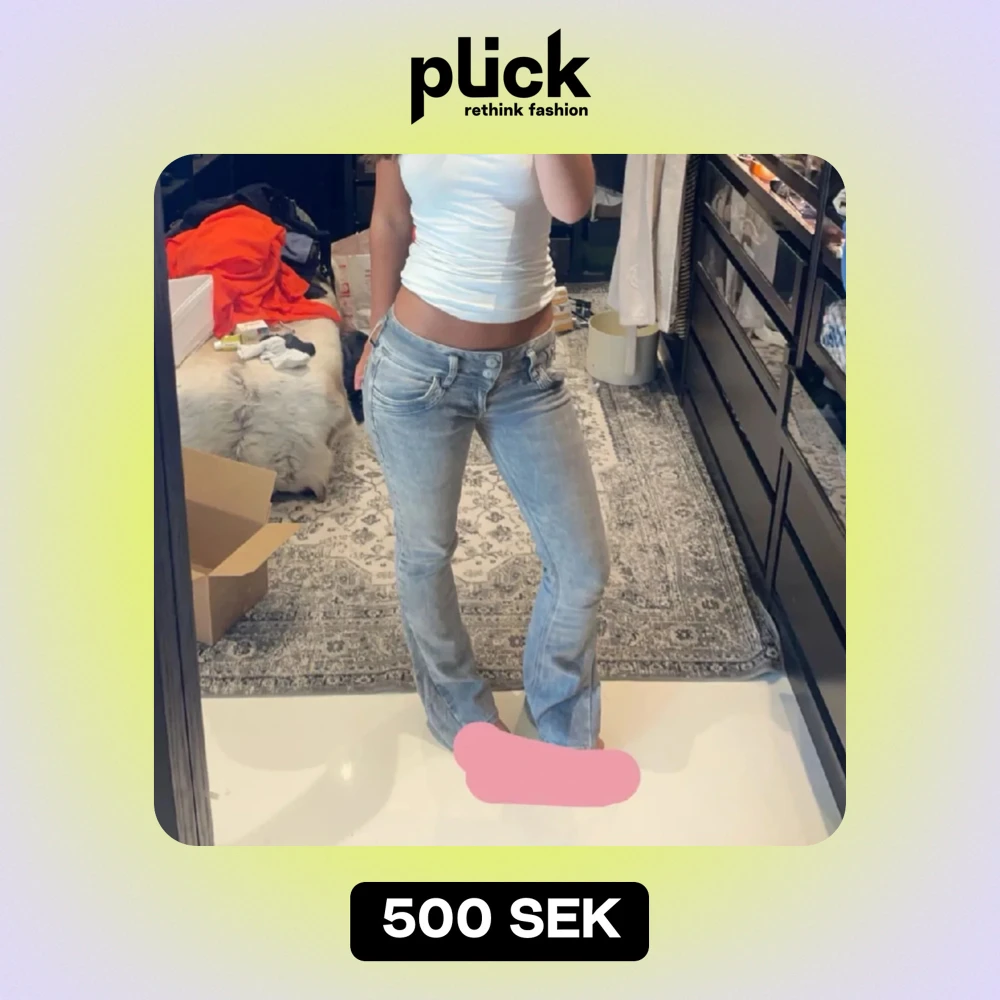 Säljer dessa fina lågmidjade jeans då jag inte använder dom längre! Midjemått raköver 36 cm innerben 75 cm. Dom är utsydda och sprätta nedtill. (Lånade bilder)